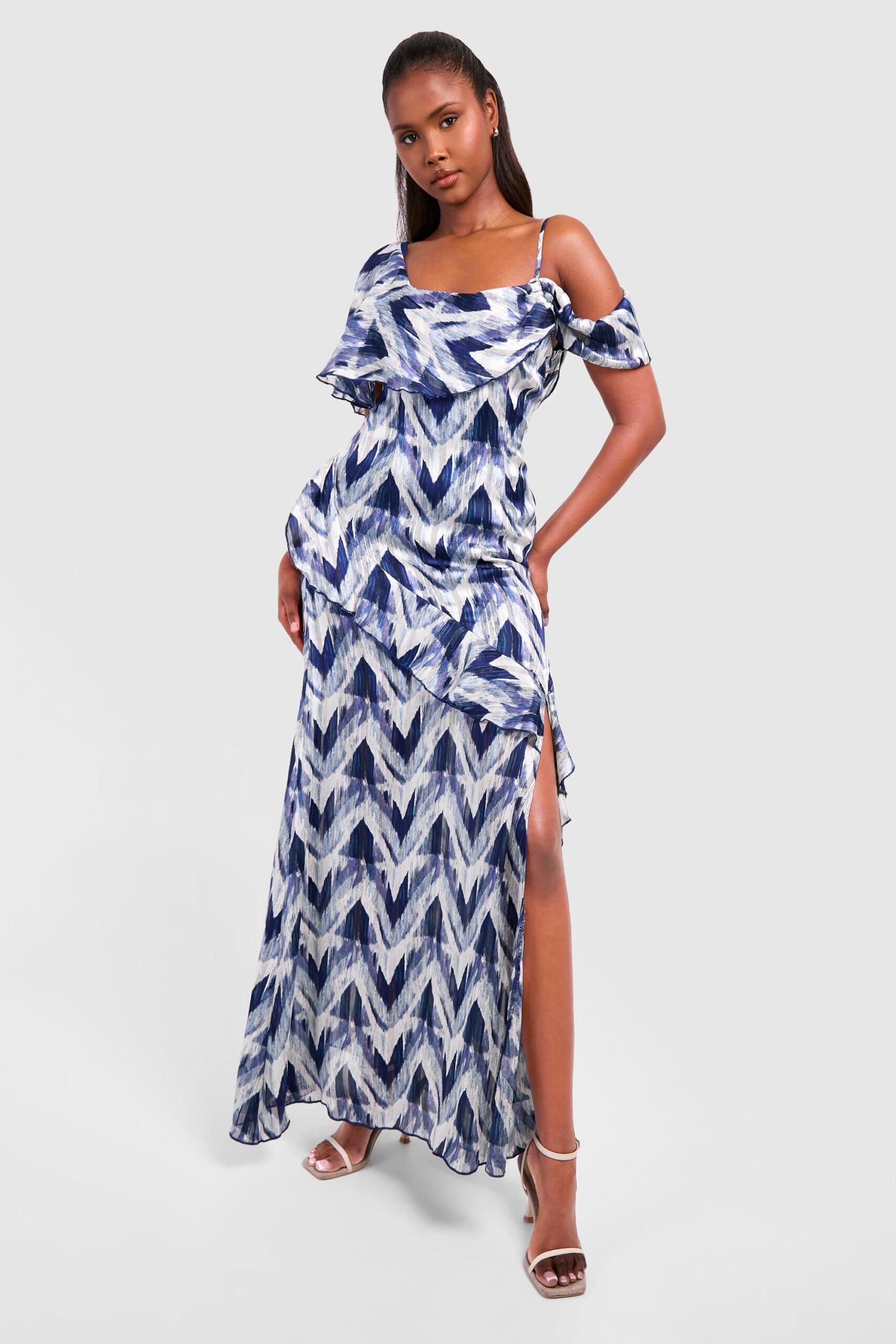 Womens Abstract Cold Shoulder Midaxi Dress – Blue – 8 – Abstract Cold Shoulder Midaxi Dress
