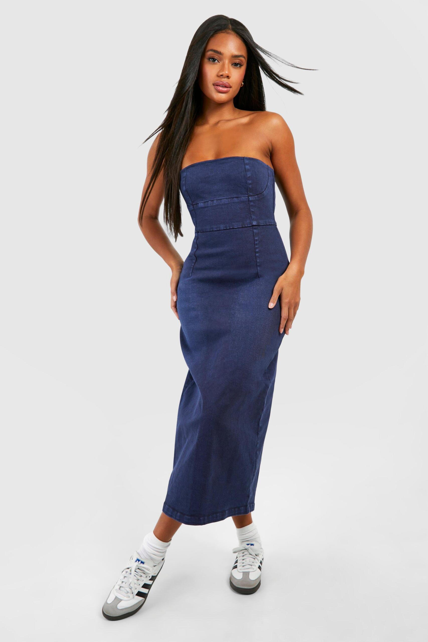 Boohoo Womens Bandeau Column Denim Maxi Dress