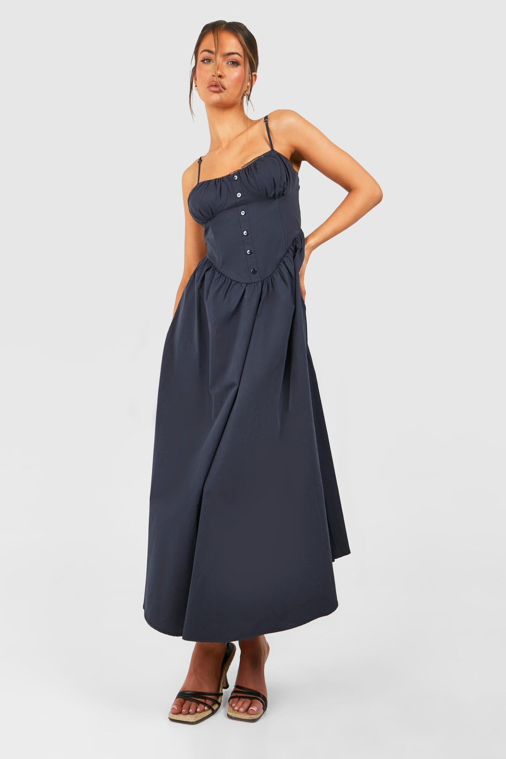 Womens Cotton Midaxi Milkmaid Dress – Navy – 8 – Cotton Midaxi Milkmaid Dress