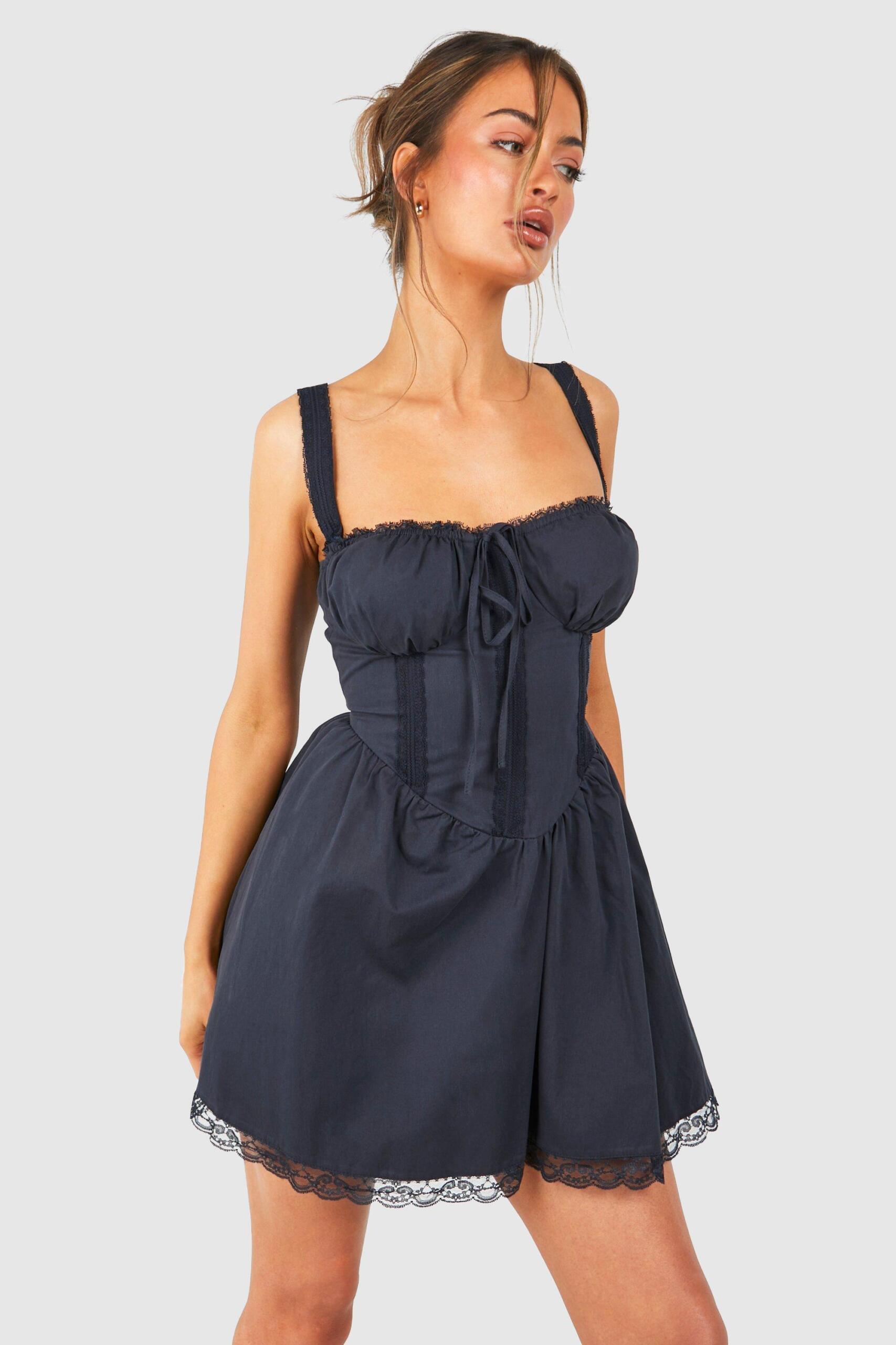 Womens Cotton Strappy Milkmaid Mini Dress – Navy – 8 – Cotton Strappy Milkmaid Mini Dress
