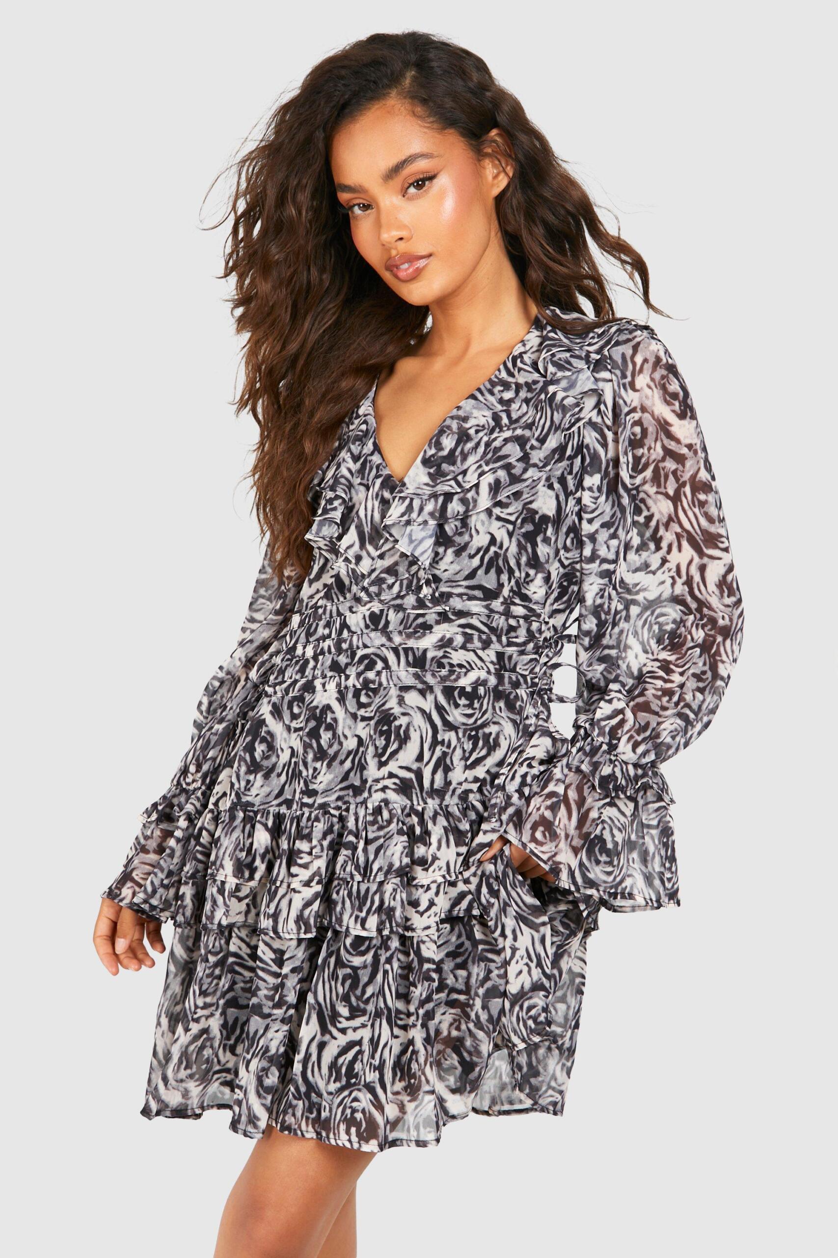 Price History for Boohoo Womens Floral Chiffon Ruffle Detail Smock Dress