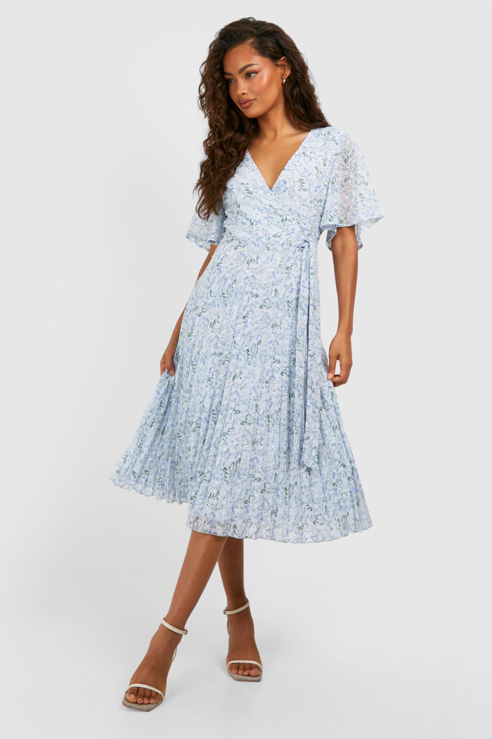 Boohoo Womens Floral Print Pleated Midi Skater Dress