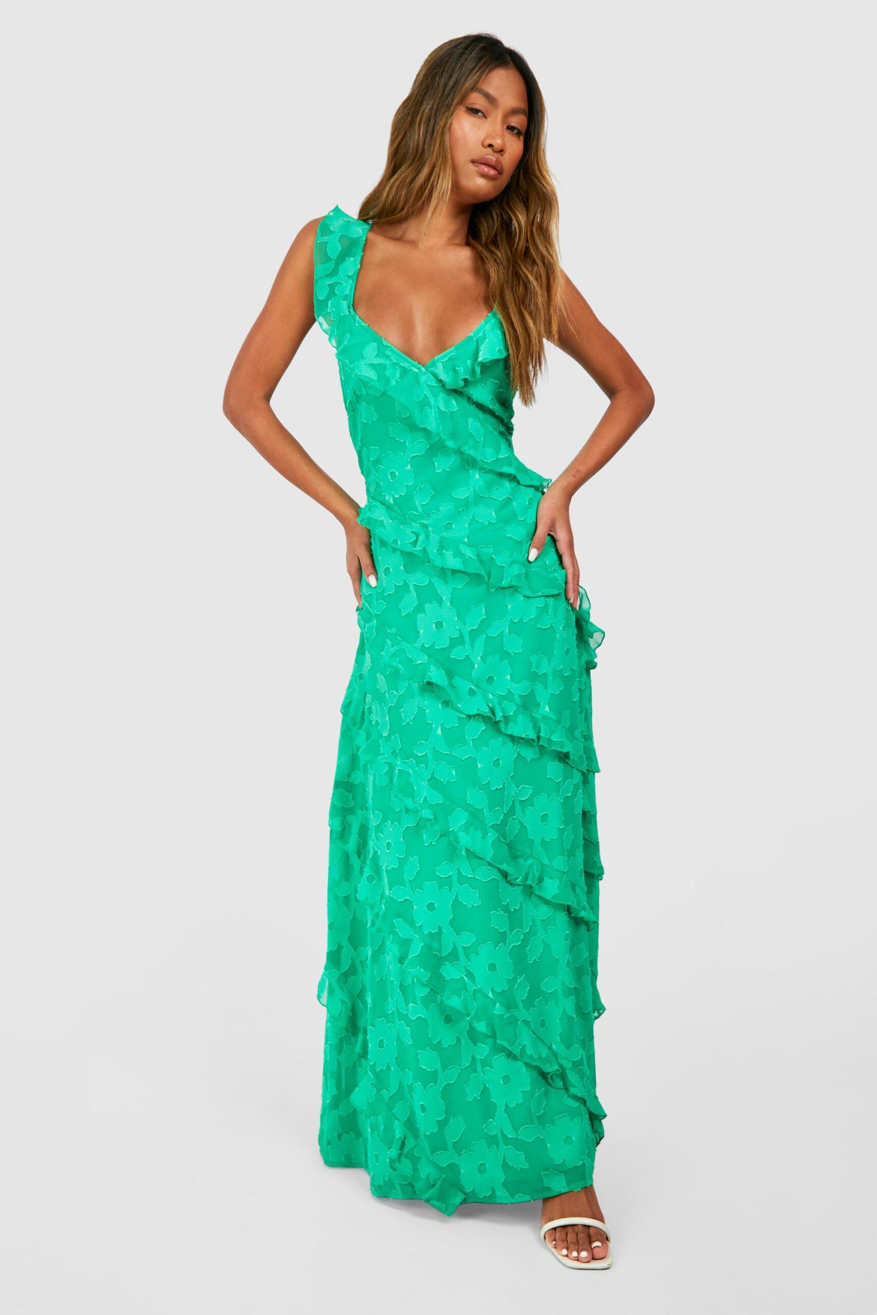 Boohoo Womens Jacqard Ruffle Strappy Maxi Dress