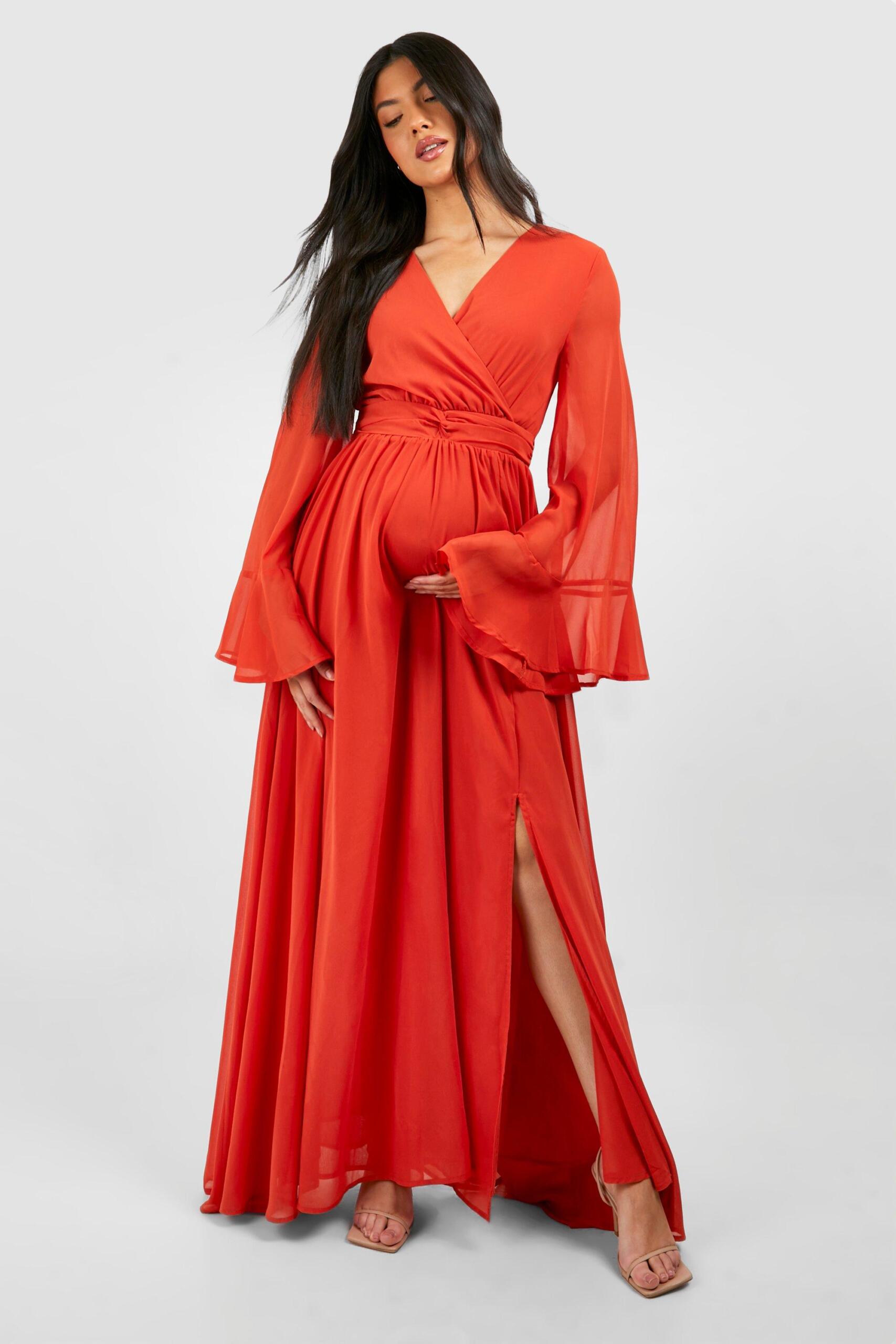 Boohoo Womens Maternity Chiffon Flared Sleeve Maxi Dress