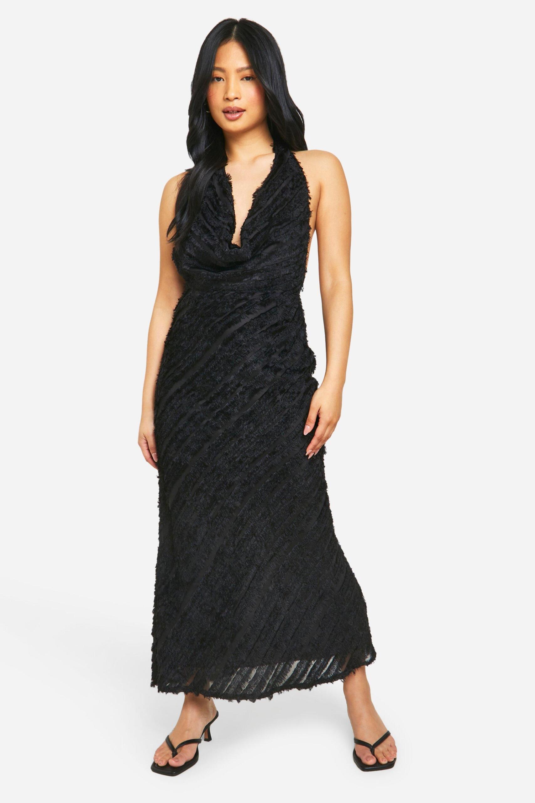 Womens Petite Cowl Textured Maxi Dress – Black – 6 – Specifically designed to fit those 5’3” and under, boohoo’s range of petite maxi dresses is here to elevate your wardrobe this season. From floral designs to daring thigh splits, our collection of petite long dresses has you covered. Whether you’re heading abroad or enjoying a staycation, just pair with barely-there heels and a cute clutch and get ready to turn some serious heads. PSA: if you’re feeling more casual, this one would look just as good with chunky trainers and an oversized beach bag.Style: Slip DressFabric: WovenLength: MaxiNeckline: CowlSleeve Length: Sleeveless