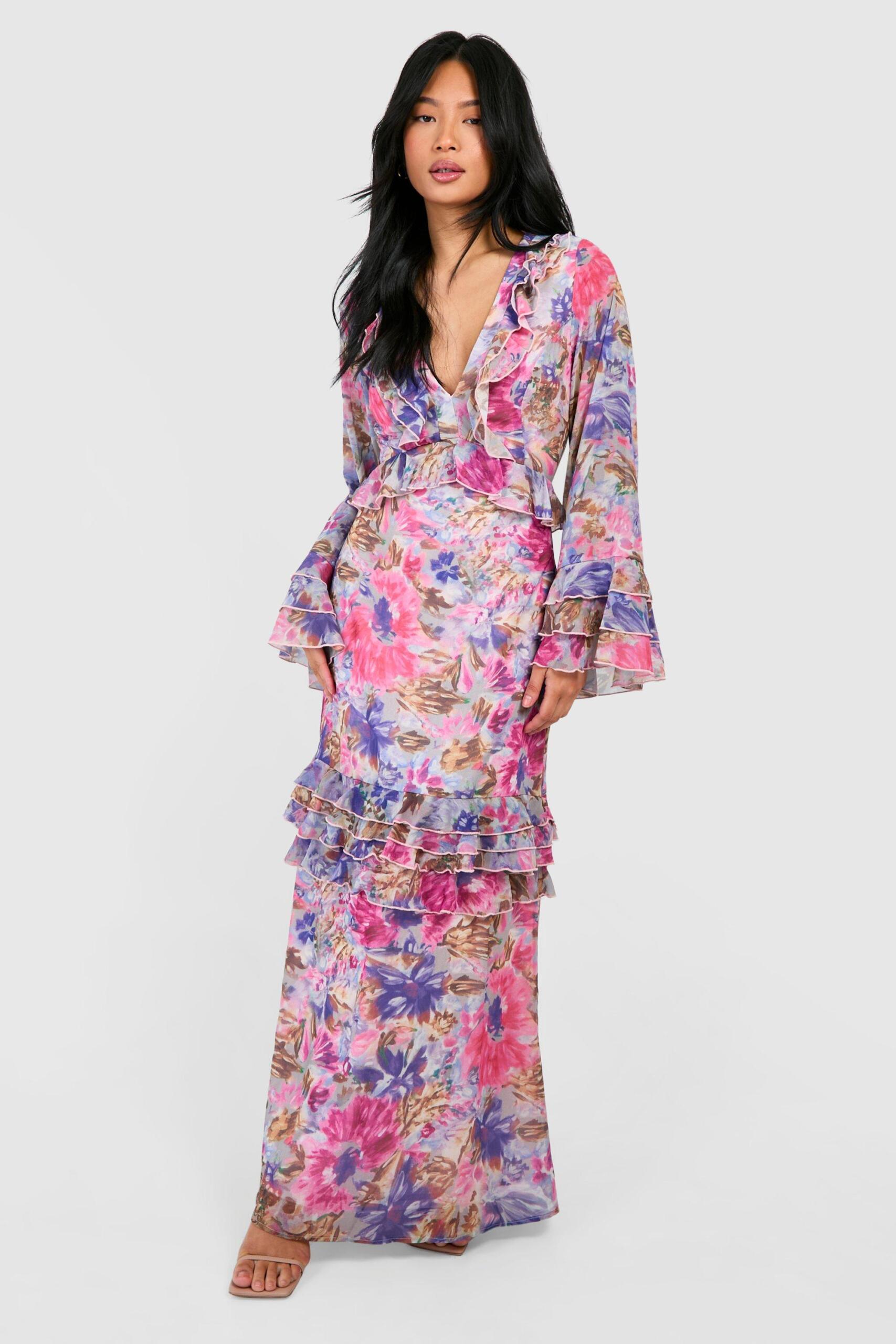 Womens Petite Floral Ruffle Flare Sleeve Woven Maxi Dress – Pink – 6 – Specifically designed to fit those 5’3” and under, boohoo’s range of petite maxi dresses is here to elevate your wardrobe this season. From floral designs to daring thigh splits, our collection of petite long dresses has you covered. Whether you’re heading abroad or enjoying a staycation, just pair with barely-there heels and a cute clutch and get ready to turn some serious heads. PSA: if you’re feeling more casual, this one would look just as good with chunky trainers and an oversized beach bag.Style: Maxi DressDesign: FloralFabric: WovenLength: MaxiSleeve Length: Long Sleeve
