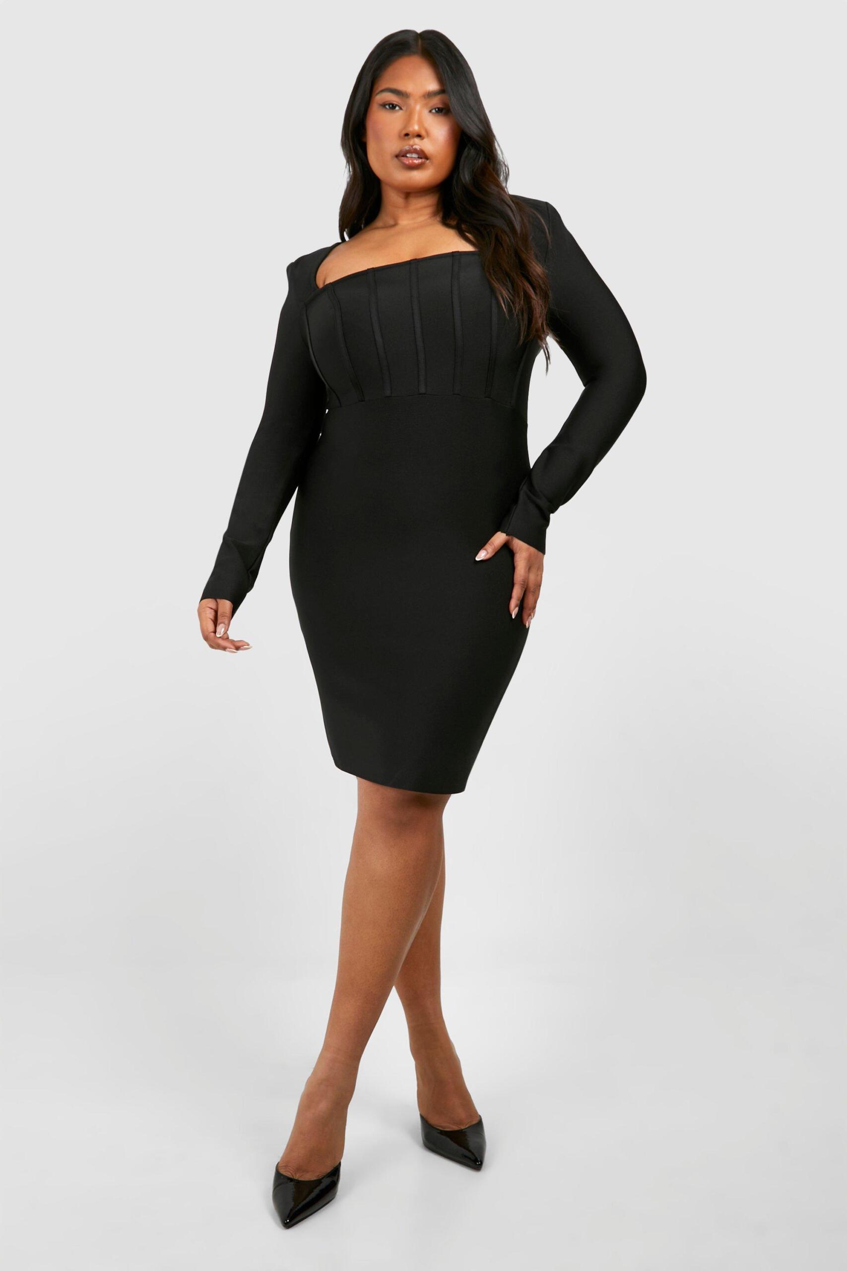 Boohoo Womens Plus Bandage Long Sleeve Bodycon Dress