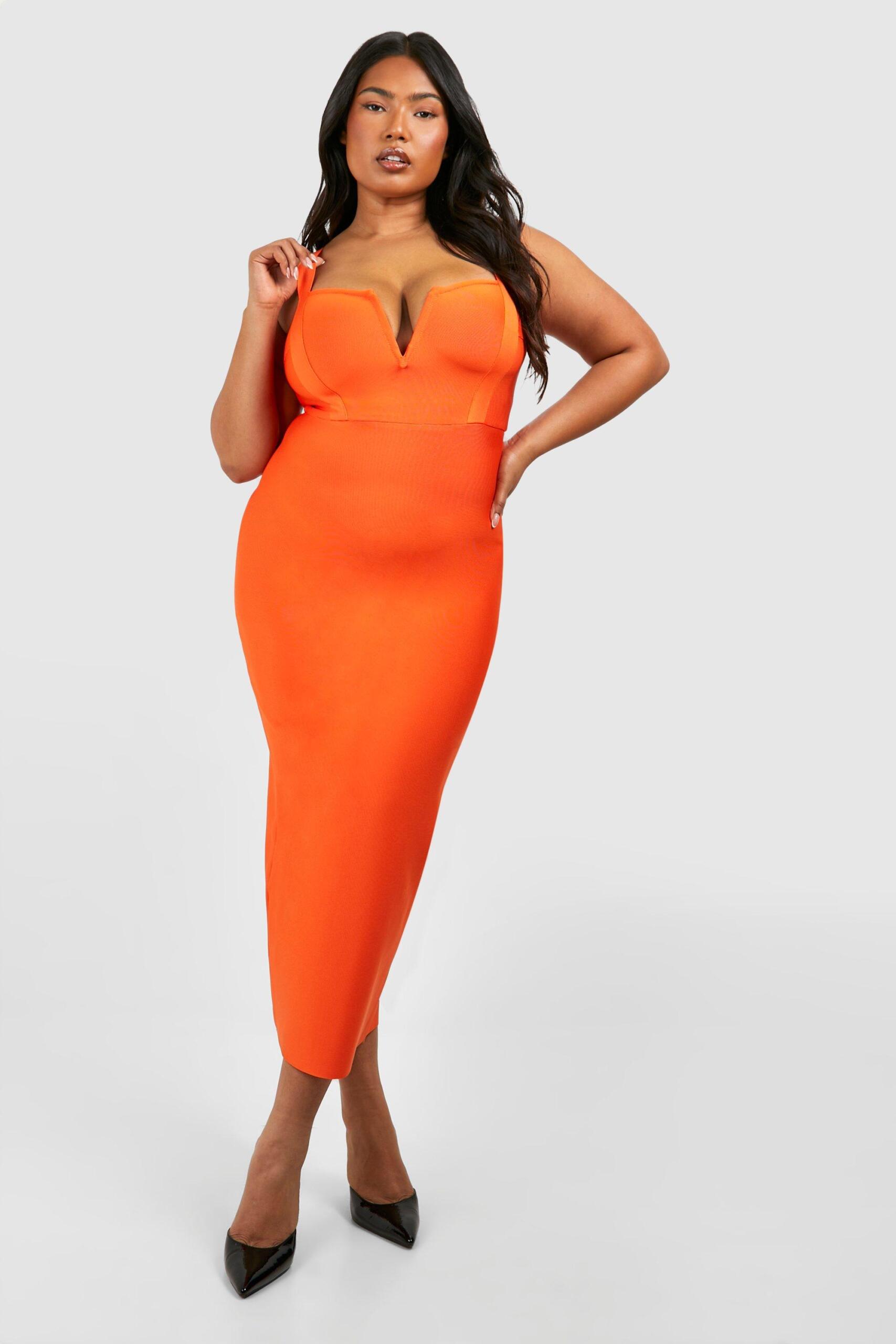 Womens Plus Bandage Mesh V Midi Dress – Orange – 16 – Plus Bandage Mesh V Midi Dress