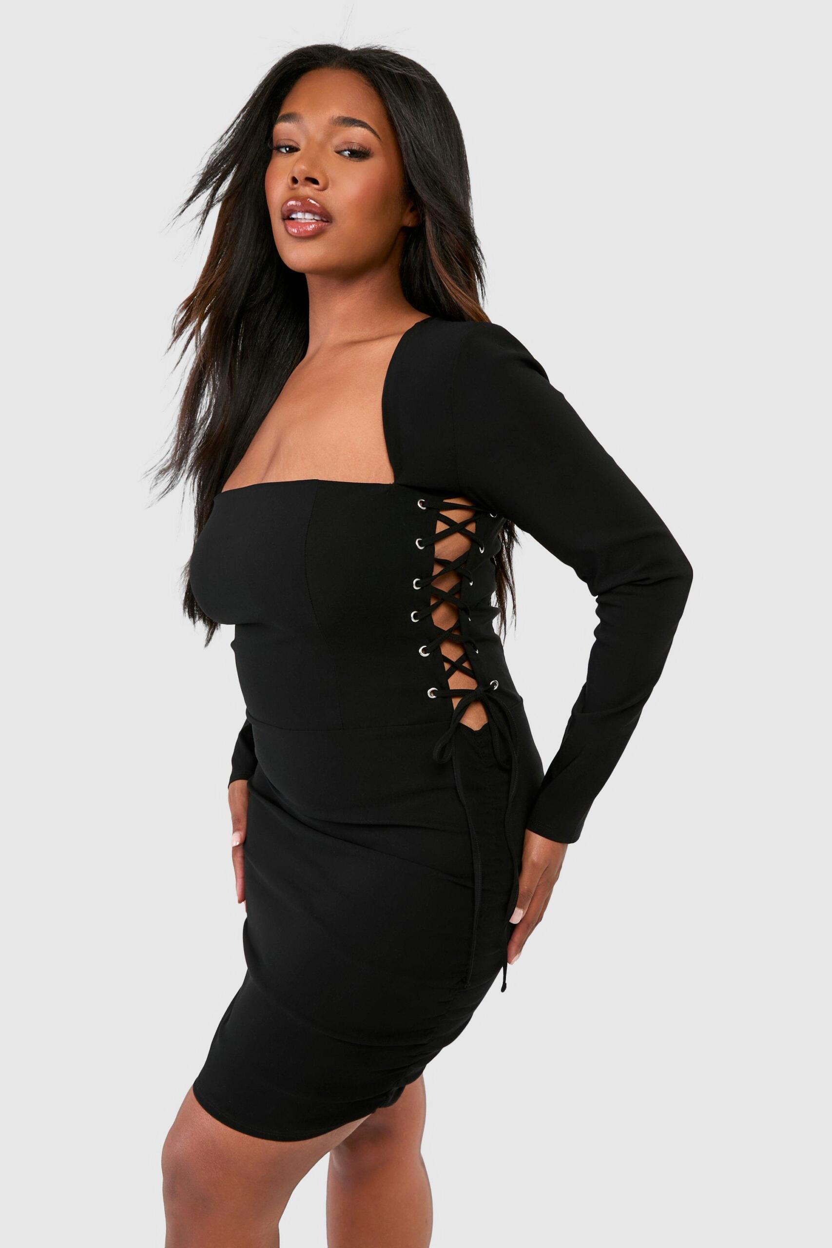 Boohoo Womens Plus Bengaline Lace Up Square Neck Corset Bodycon Dress