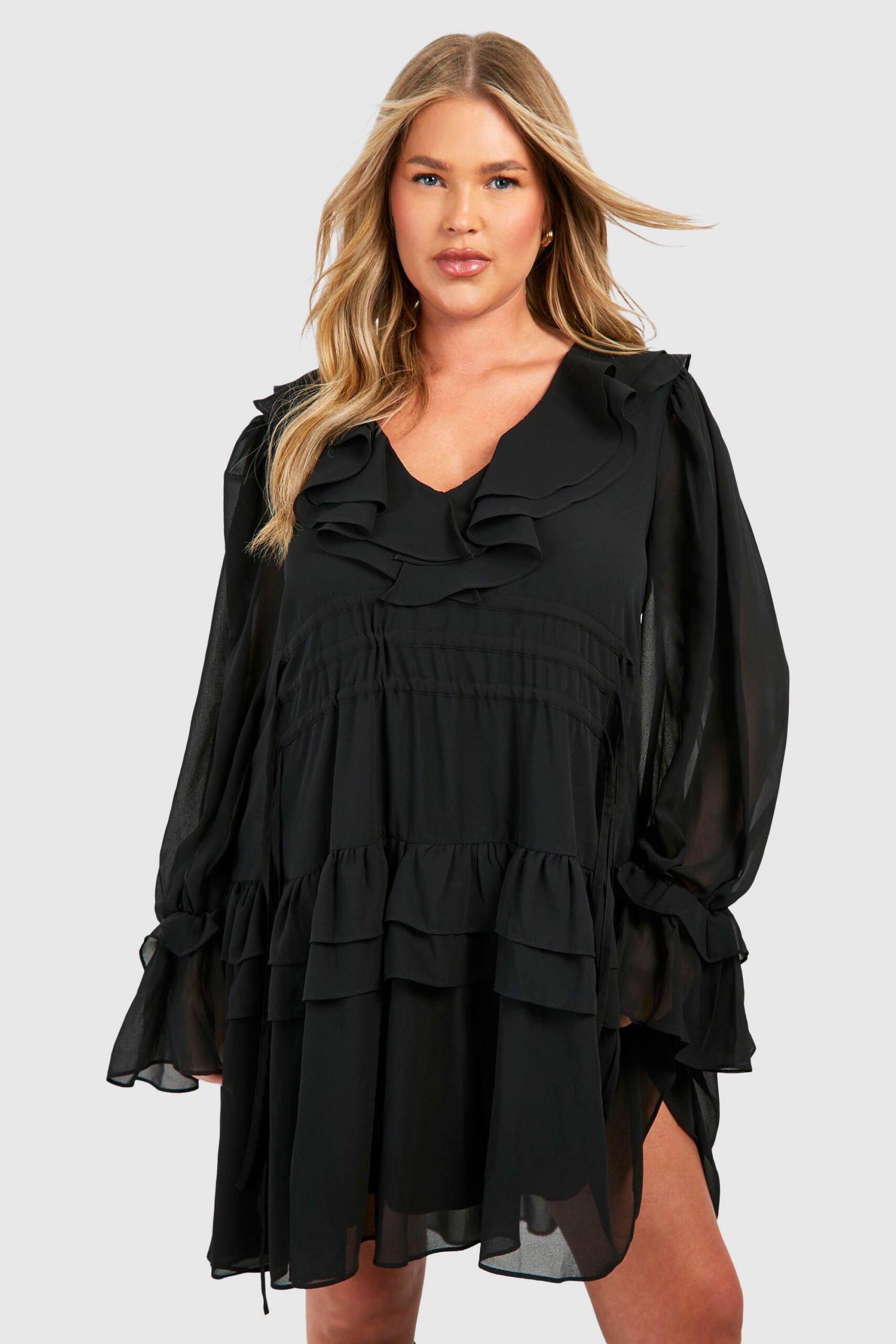 Boohoo Womens Plus Chiffon Ruffle Layer Skater Dress