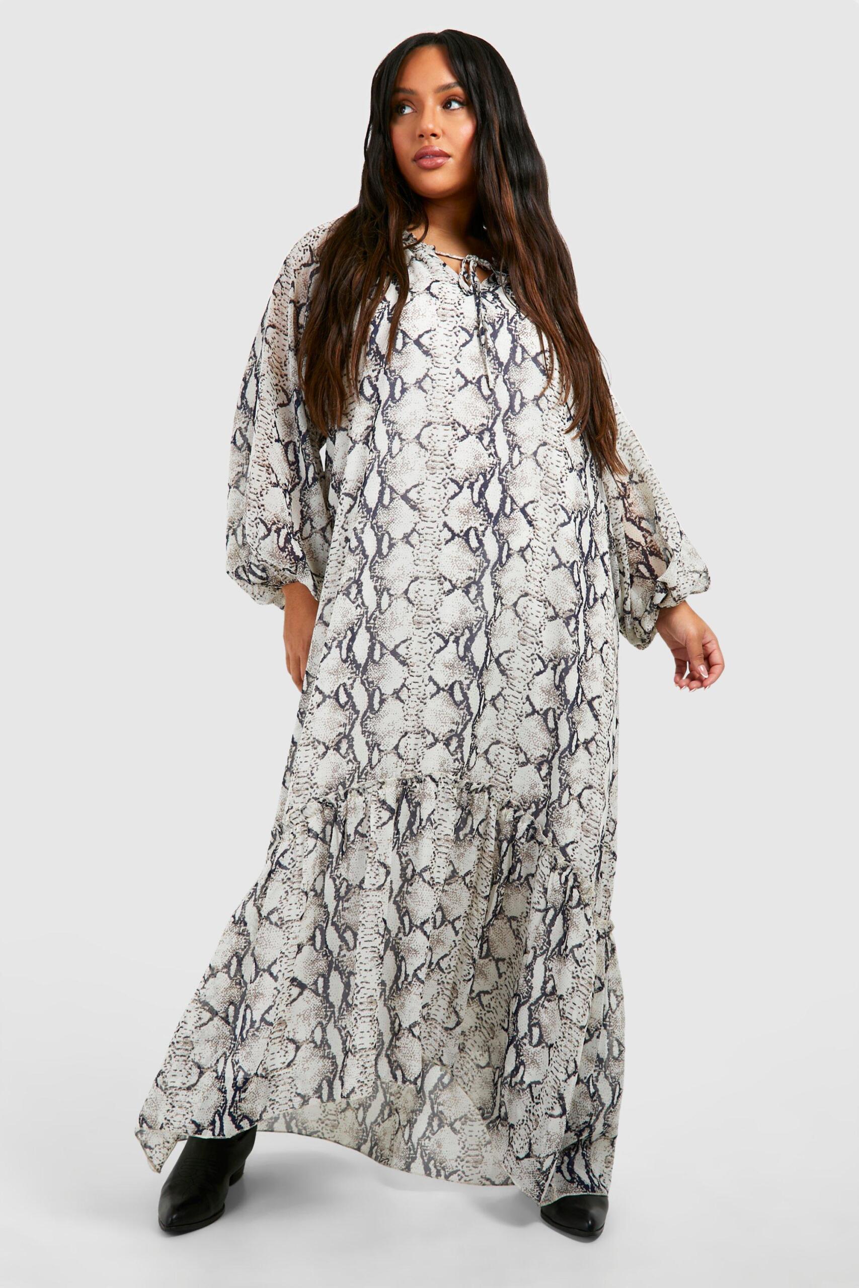 Boohoo Womens Plus Chiffon Snake Tie Neck Midaxi Smock Dress