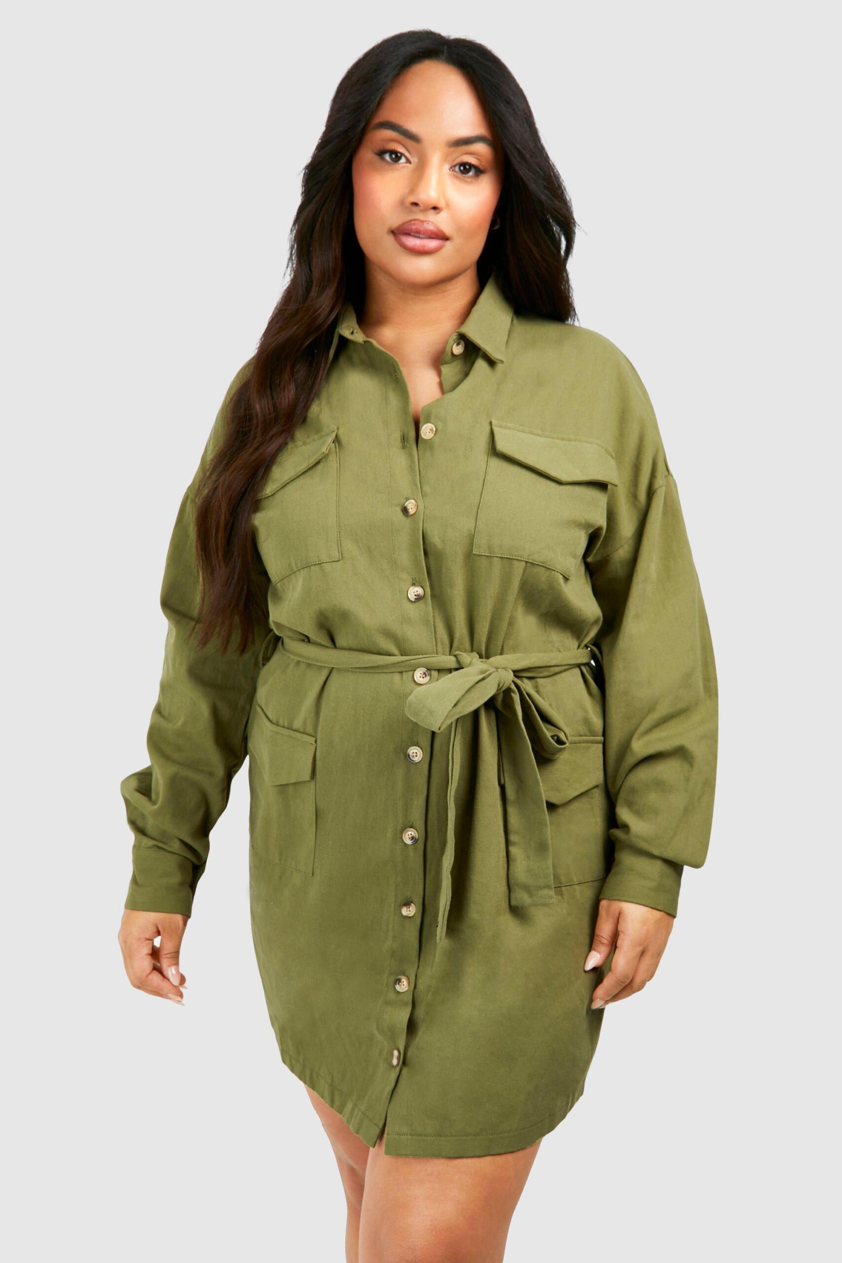 Womens Plus Cotton Twill Utility Shirt Dress – green – 16 – boohoo PlusYou’ll find full on fashion for the fuller figure with the boohoo Plus range. Delivering directional designs for UK sizes 16 to 24, this ultra-flattering collection combines perfectly proportioned fits with statement styles so that you can stay on top of this season’s trends.