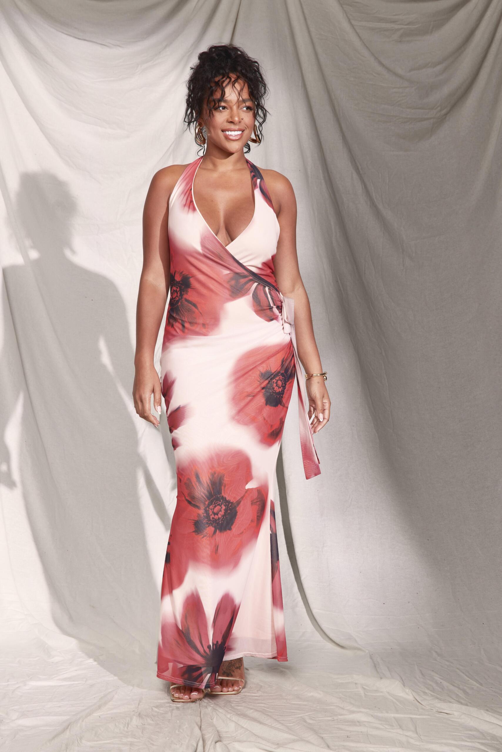 Price History for Boohoo Womens Plus Floral Wrap Cowl Maxi Dress