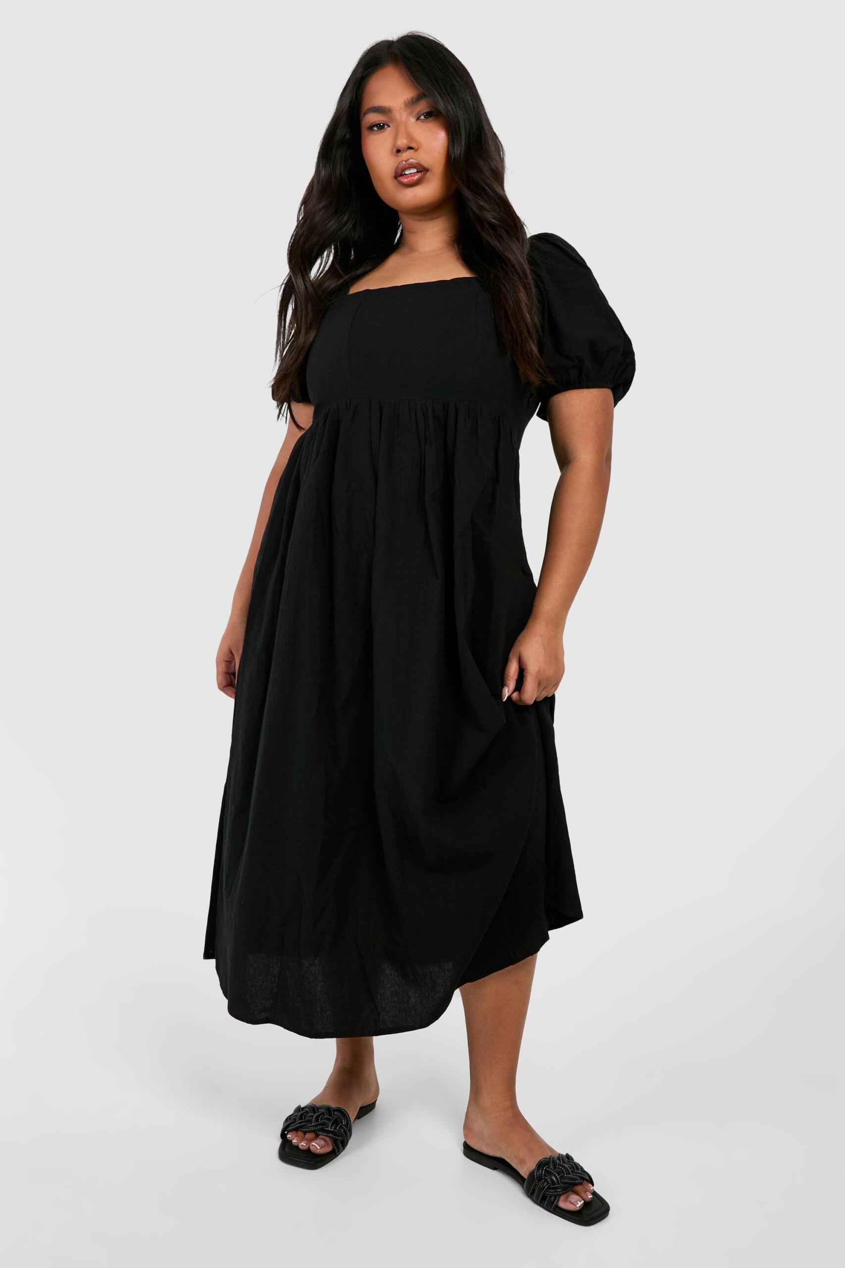 Womens Plus Linen Puff Sleeve Midaxi Smock Dress – Black – 16 – Capture your everyday style with this plus size smock dress from our updated collection. Featuring a lightweight, breezy fabric in a 1920s style, this loose fitting, free moving dress is made with extra fabric for the perfect fit. Loved for its ‘throw on and go’ vibe and seriously flattering fit, the smock dress has become a must-have shape in every curve girl’s collection. Comfort is key with a plus size summer smock dress, so just team it with chunky sandals or your go-to trainers. Easy dressing never looked so good.Style: Smock DressFabric: LinenLength: MidaxiSleeve Length: Short Sleeve