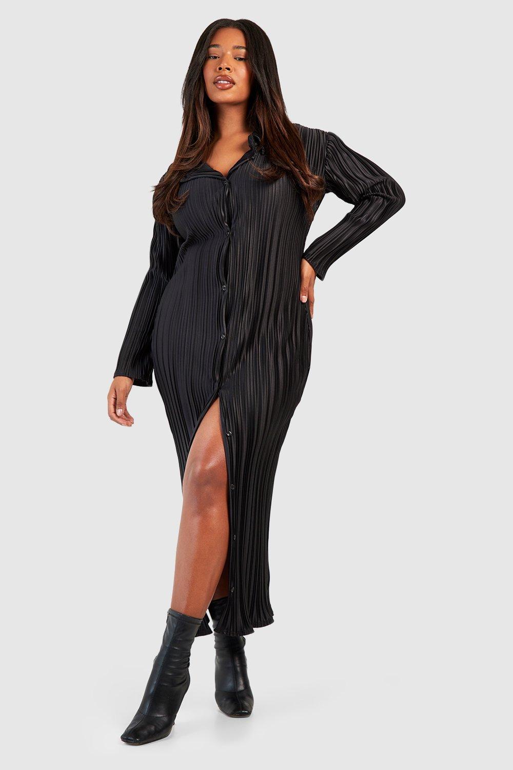 Boohoo Womens Plus Wide Plisse Midaxi Shirt Dress