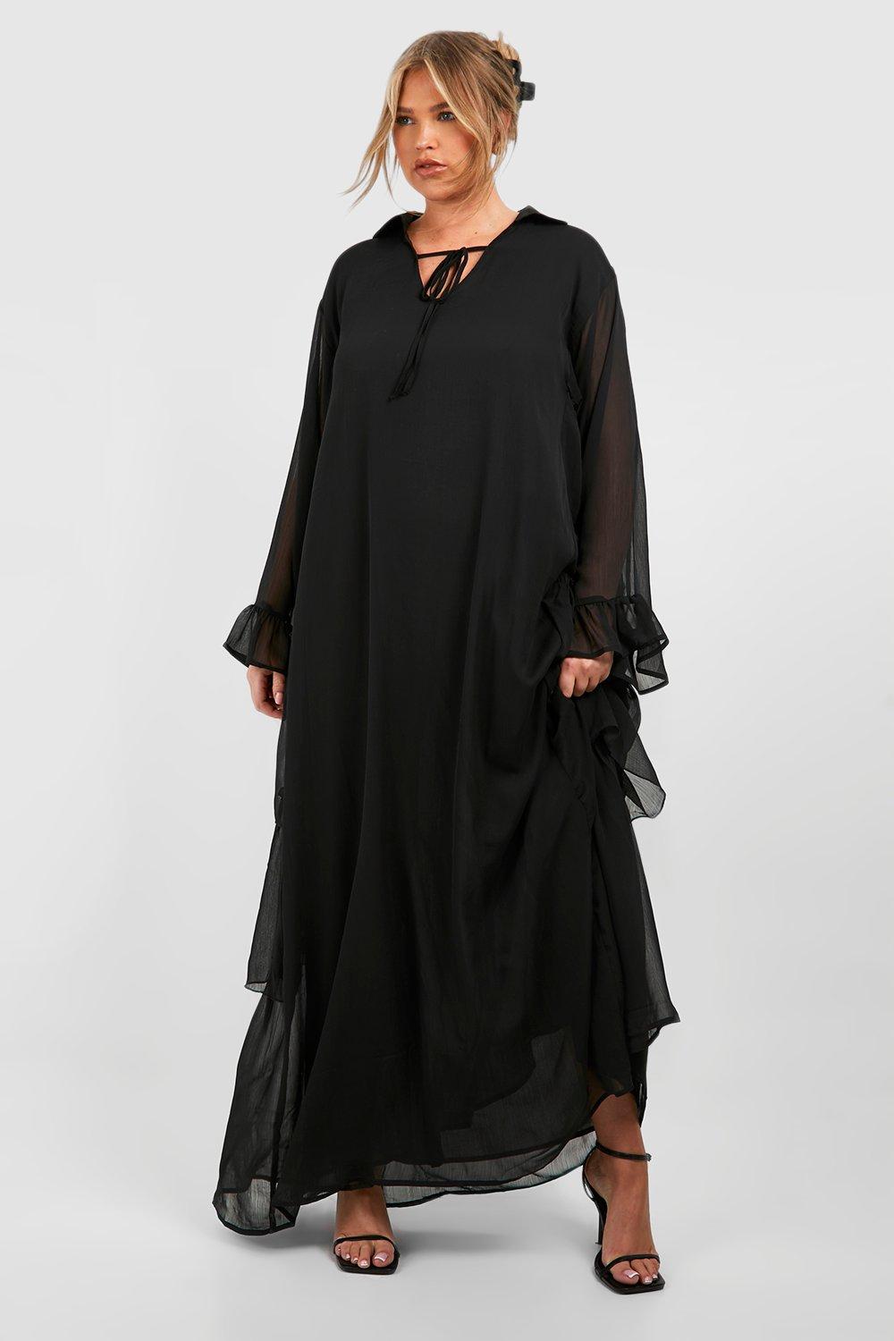 Womens Plus Woven Ruffle Tie Detail Maxi Dress – Black – 16 – Plus Woven Ruffle Tie Detail Maxi Dress