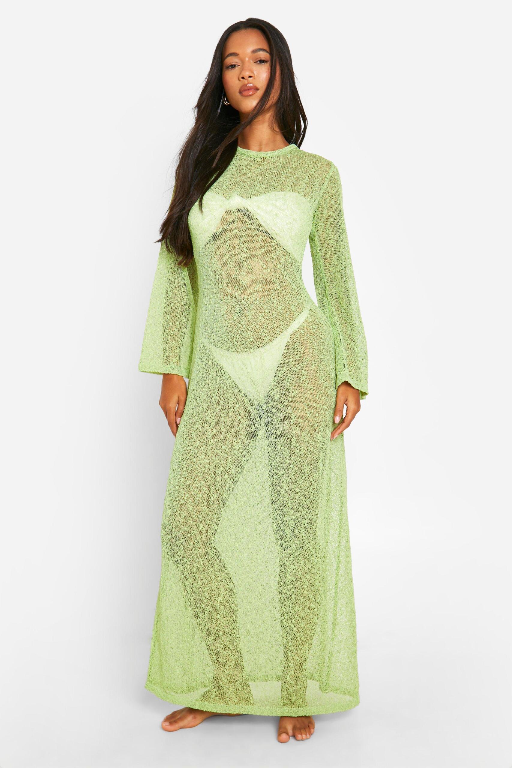 Boohoo Womens Popcorn Crochet Open Back Beach Maxi Dress