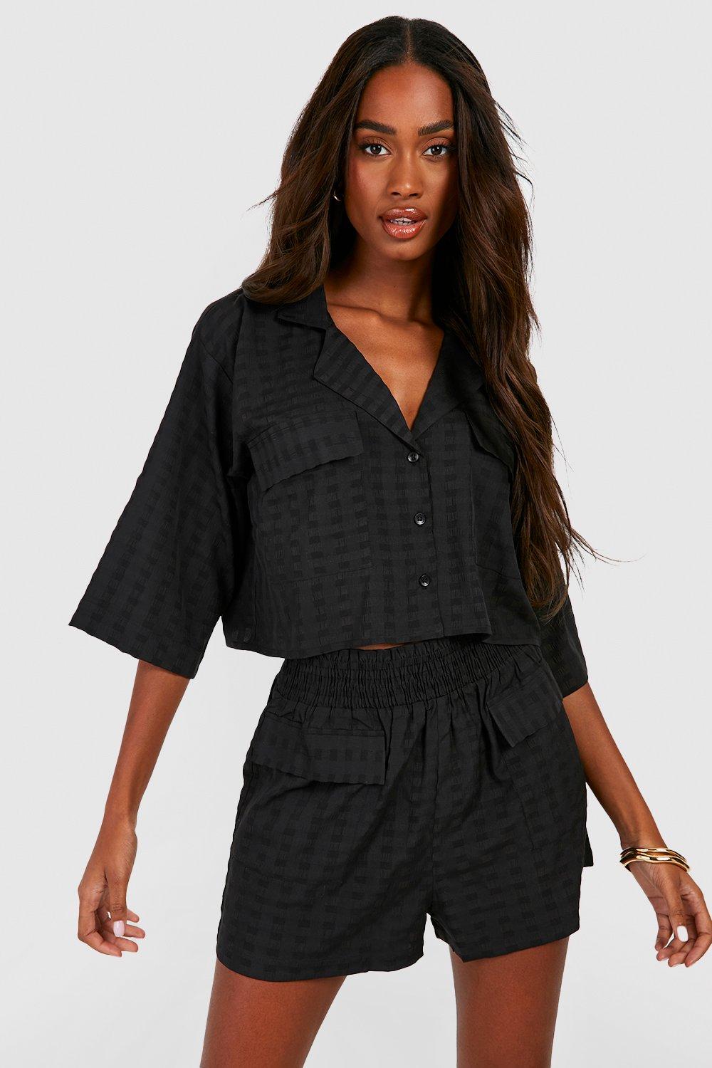 Boohoo Womens Premium Textured Pocket Detail Crop Shirt & Shorts