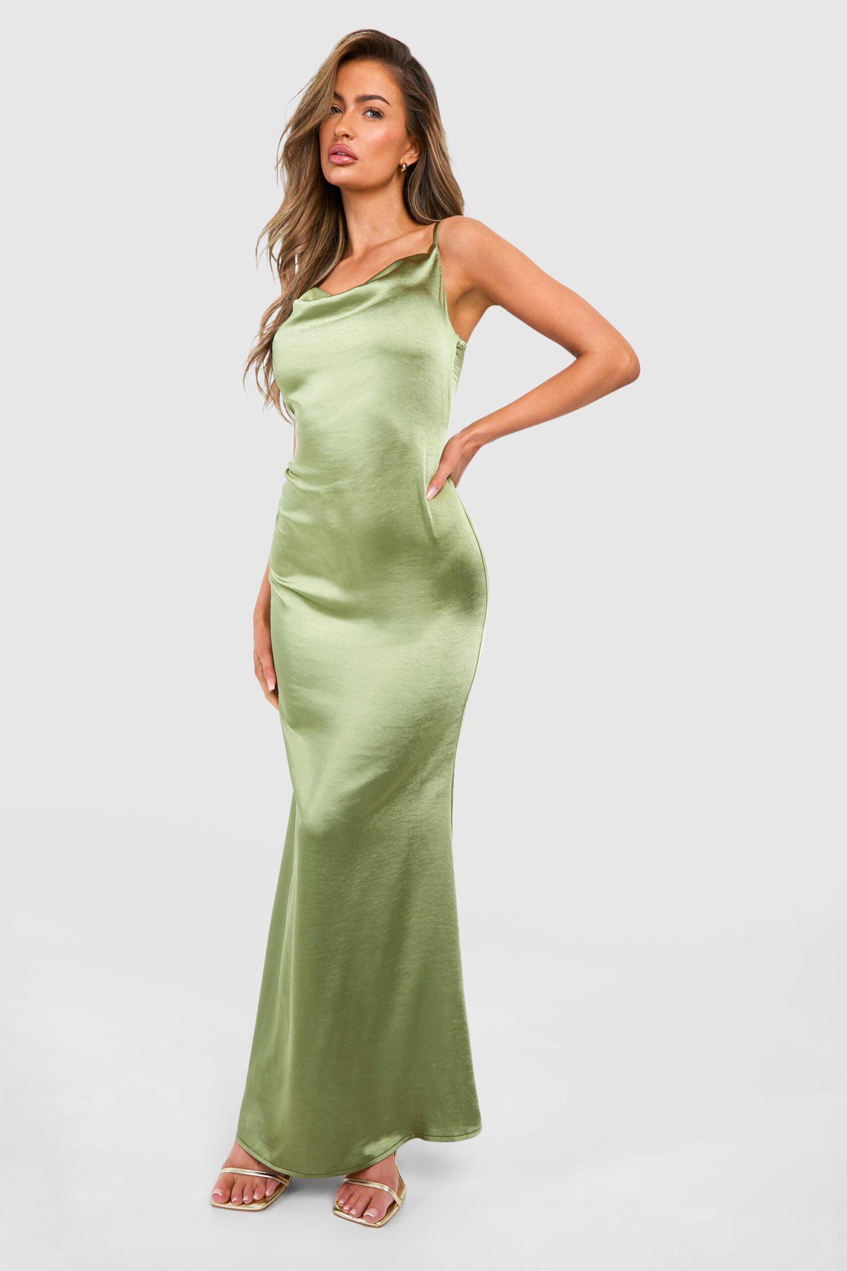 Boohoo Womens Satin Cowl Maxi Slip Dress