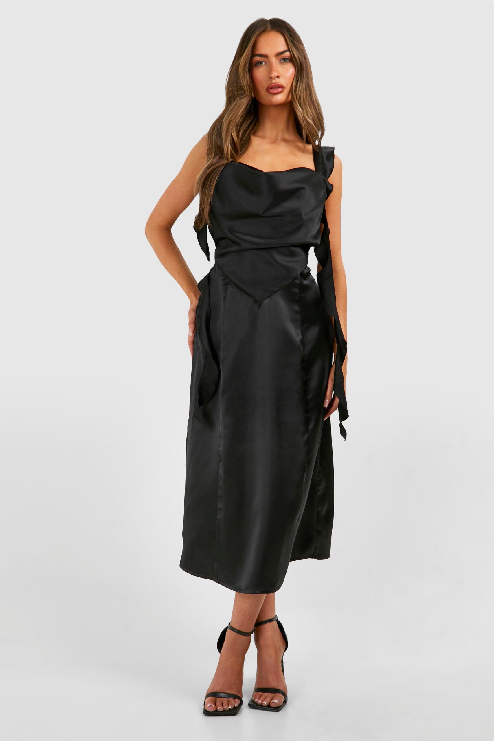 Boohoo Womens Satin Ruffle Midaxi Milkmaid Dress