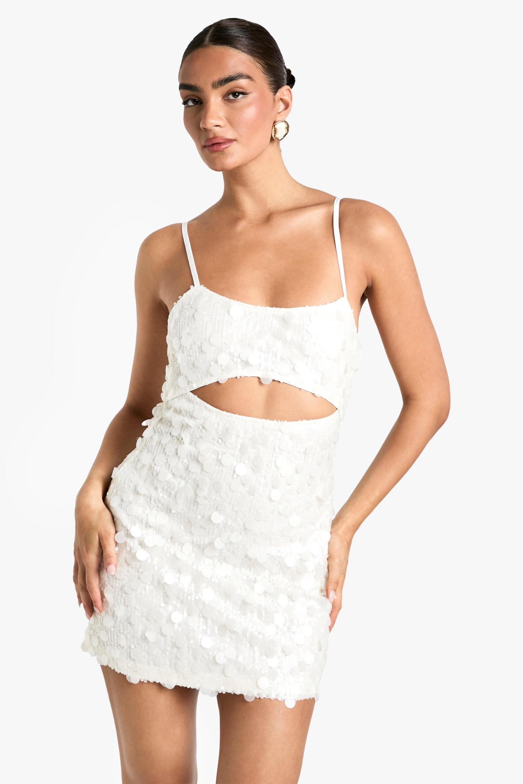 Womens Sequin Scoop Neck Cut Out Mini Dress – White – 18 – Dresses are the most-wanted wardrobe item for day-to-night dressing. From cool-tone whites to block brights, we’ve got the everyday skater dresses and party-ready bodycon styles that are perfect for transitioning from day to play. Minis, midis and maxis are our motto, with classic jersey always genius and printed cami dresses the season’s killer cut – add skyscraper heels for a seriously statement look. Dress up or down in style with boohoo.