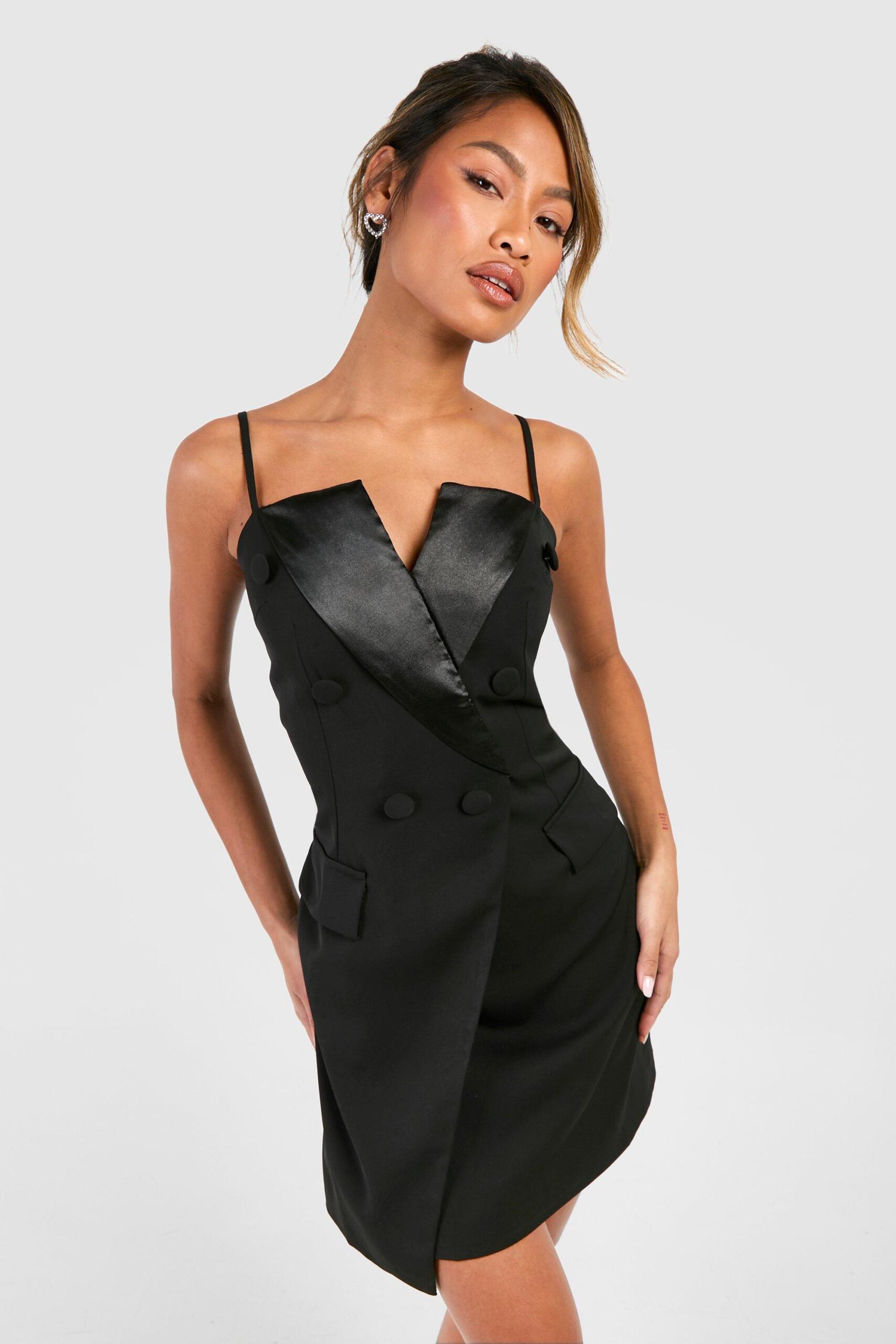Boohoo Womens Strappy Contrast Lapel Blazer Dress