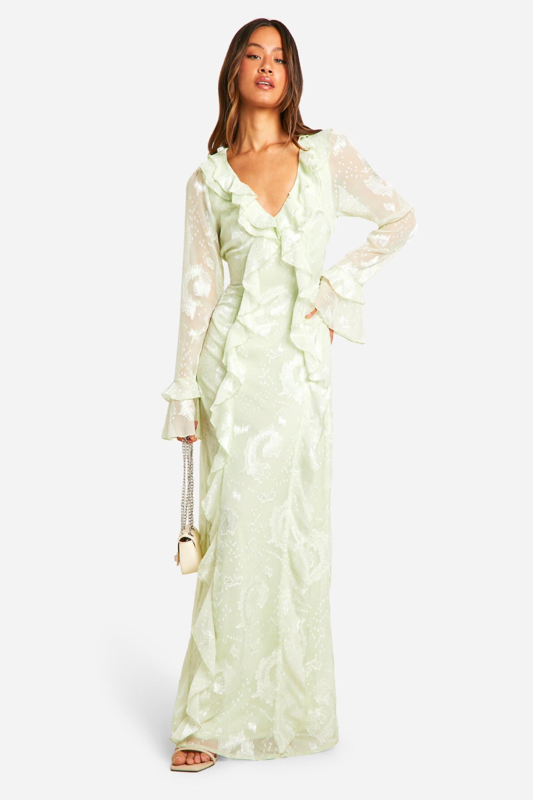 Womens Tall Ruffle Jacquard Chiffon Maxi Dress – green – 6 – Tall Ruffle Jacquard Chiffon Maxi Dress