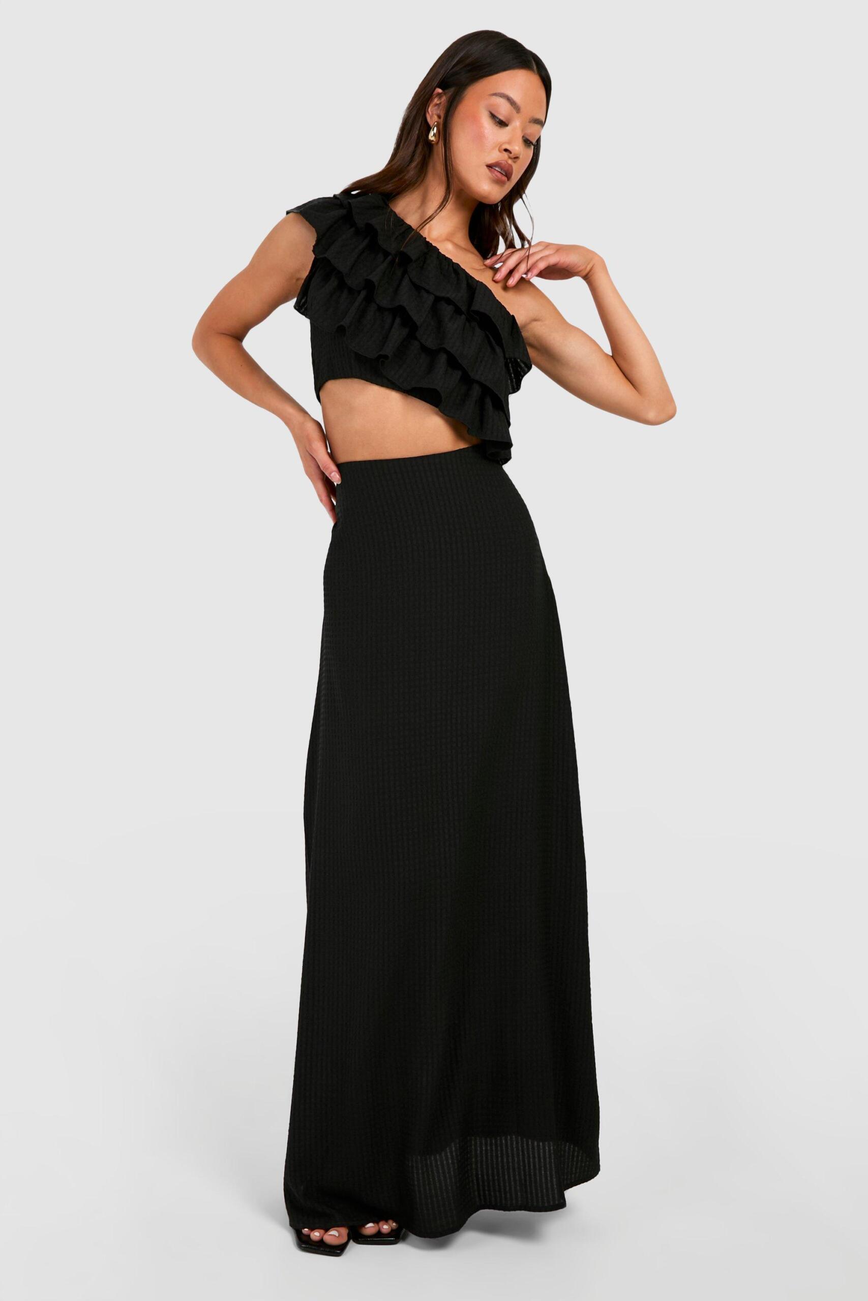 Boohoo Womens Tall Woven Textured Frill One Shoulder Maxi Dress