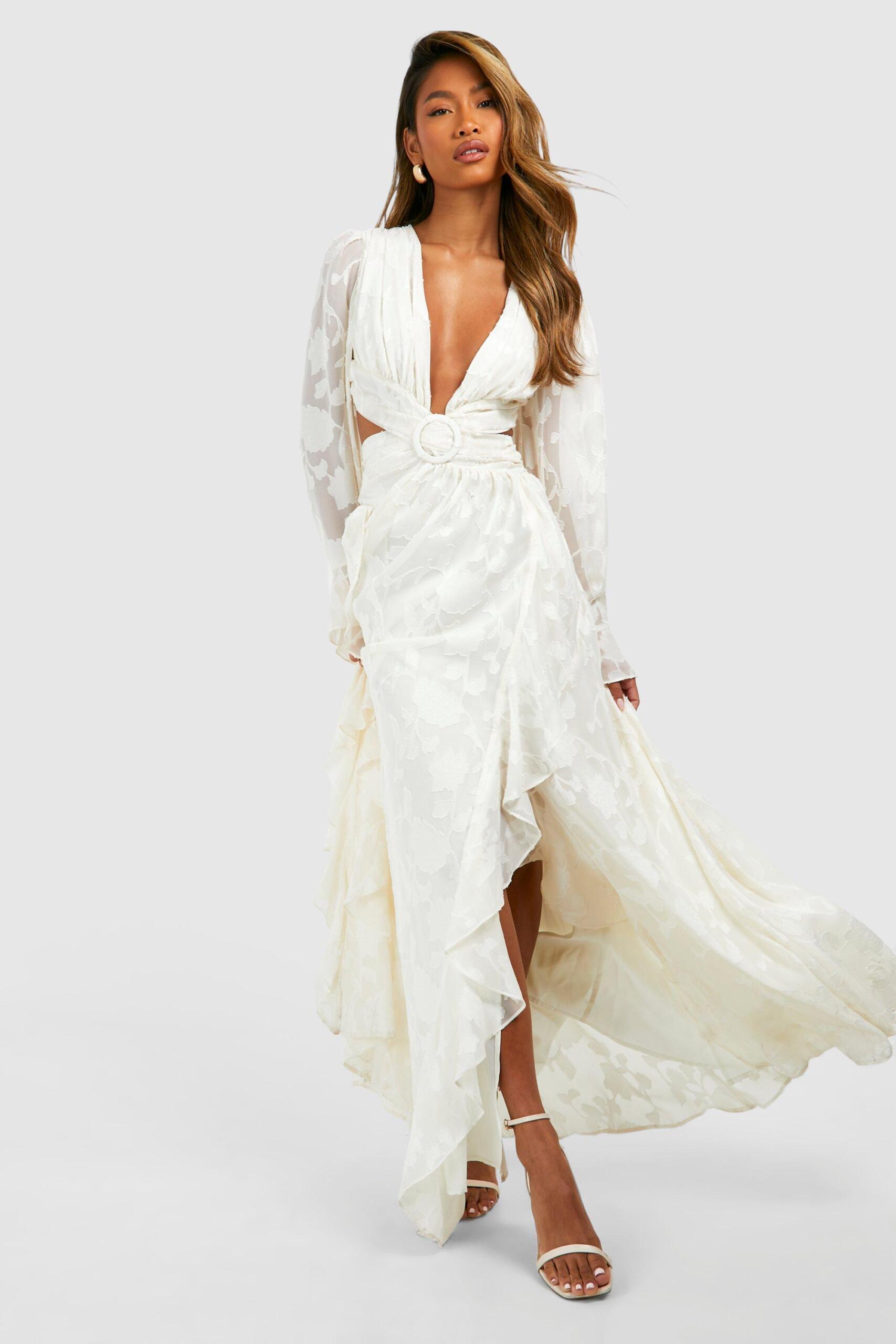 Womens Textured Cut Out Maxi Dress – White – 8 – Lightweight, floaty and oh-so-chic, a chiffon dress is the ultimate day-to-night piece in any girl’s wardrobe. An airy sheer fabric which is perfect for evening wear, let your dress do the talking and prepare to turn some serious heads in this pretty dress. Need inspo? Team this one with ankle boots and a leather jacket to nail the ultimate smart-casual look, or opt for barely-there heels for nights that require a little more glam. New mantra: this dress, on repeat.Style: Skater DressFabric: ChiffonLength: MaxiSleeve Length: Long Sleeve