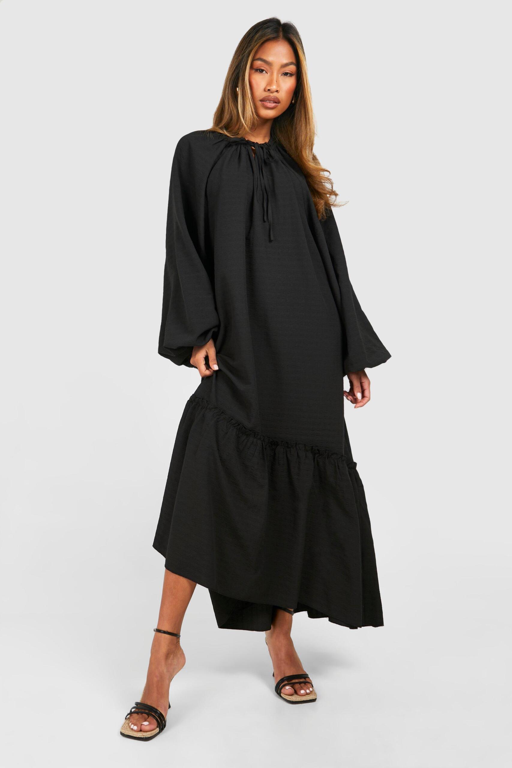 Boohoo Womens Textured Tie Neck Midaxi Smock Dress