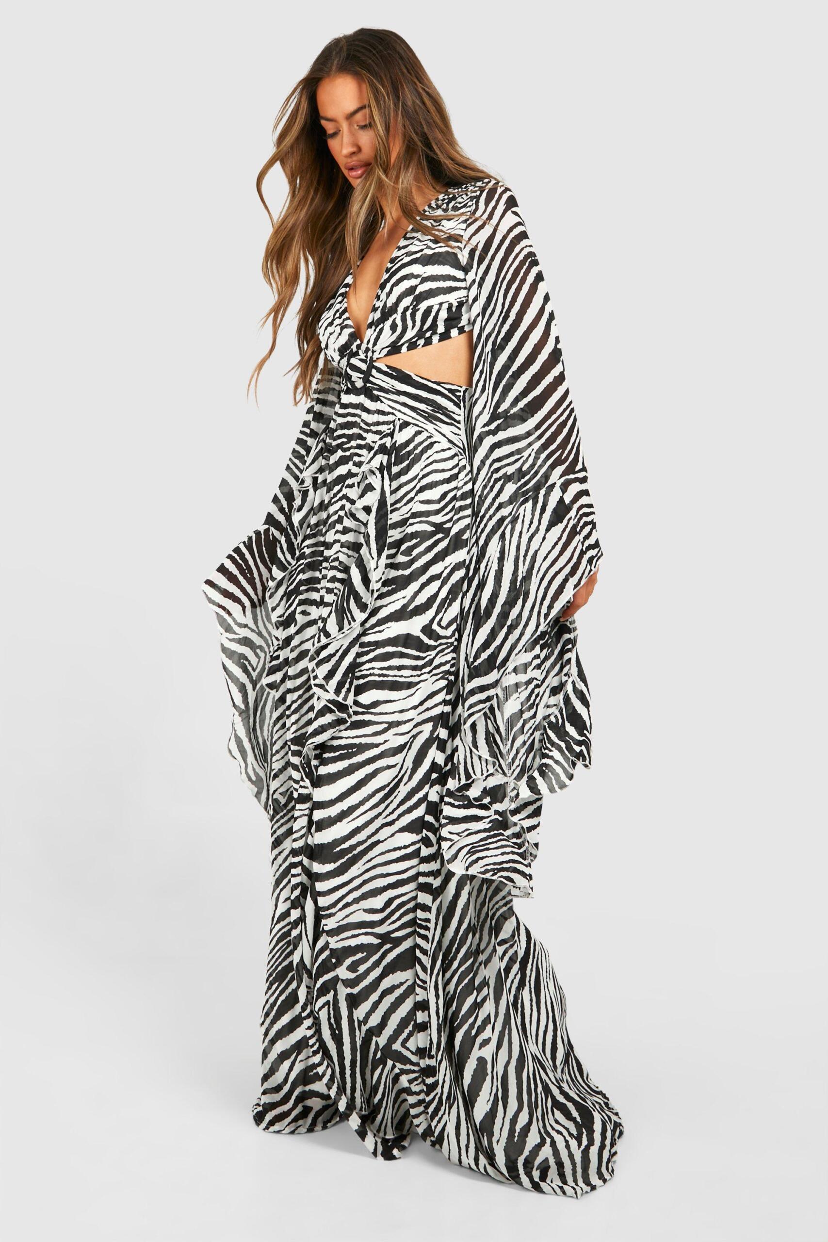 Boohoo Womens Zebra Chiffon Print Cut Out Maxi Dress