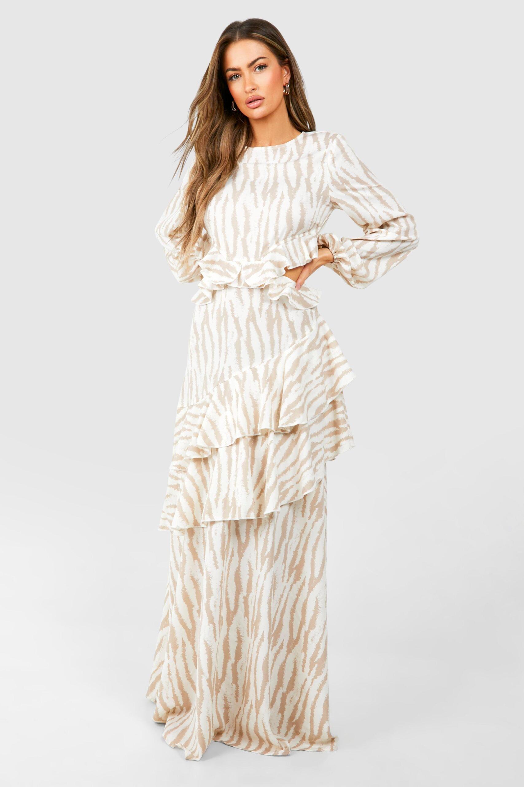 Boohoo Womens Zebra Frill Detail Cut Out Maxi Dress