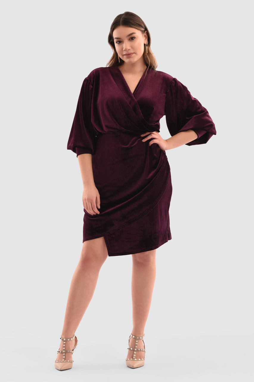 Closet London Curves Plum Velvet Puff Sleeve Wrap Dress