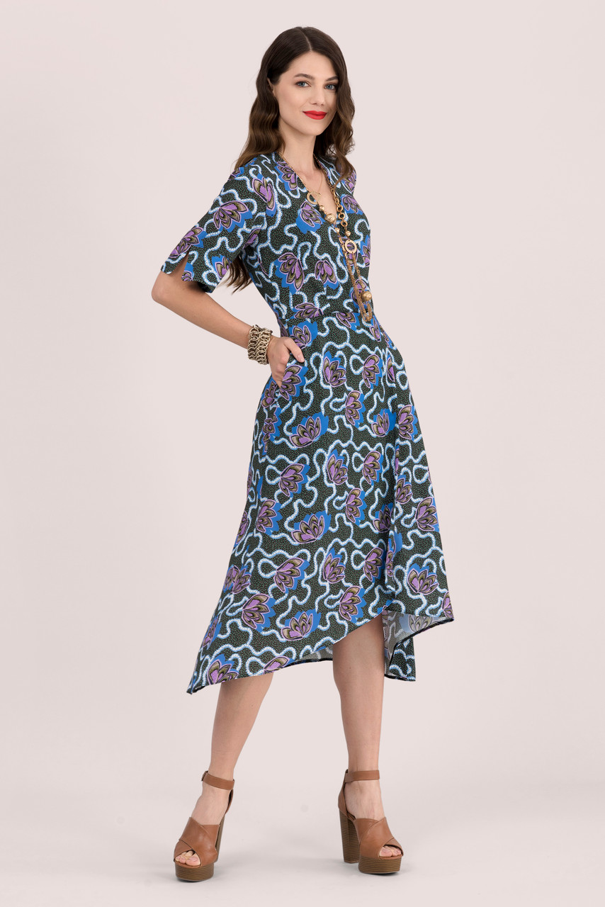 The Closet London Green Printed Short Sleeve Wrap Dress is a lightweight and comfortable dress designed with a vibrant and chic African-inspired print. The dress is made of lightweight-satin crepe, and the outer fabric is 100% viscose, ensuring a comfortable feel against the skin. To care for the dress, simply follow the instructions on the care label to keep it looking as good as new.