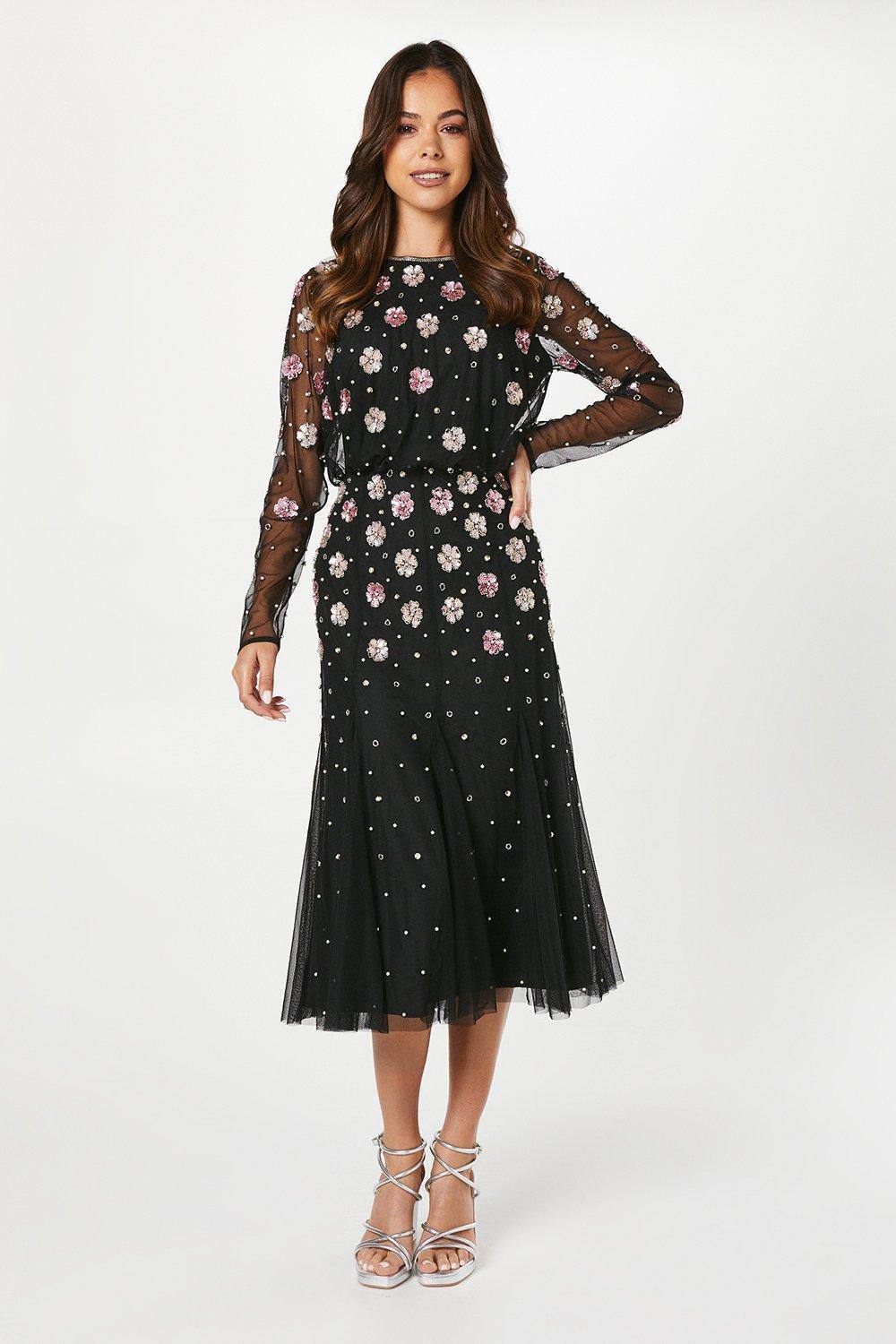 Coast Party Sequin Long Sleeve Floral Midi Dress
