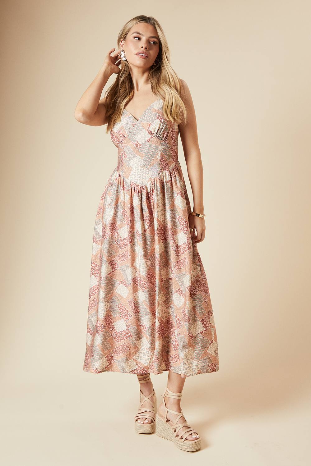 Dorothy Perkins Womens Paisley Seamed Bodice Strappy Midi Dress