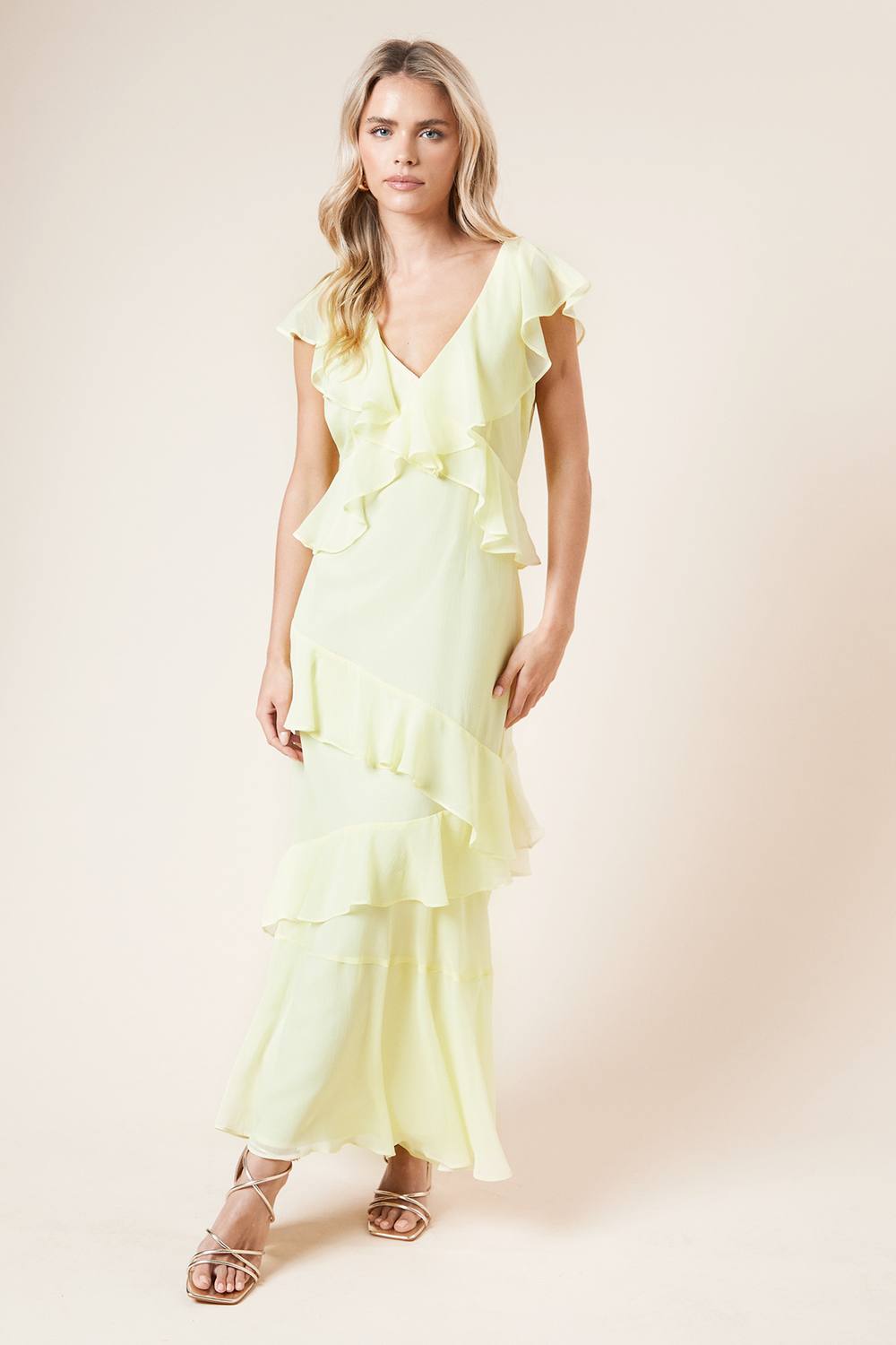 Petite Dp Luxe Lemon Ruffle Chiffon Midi Dress