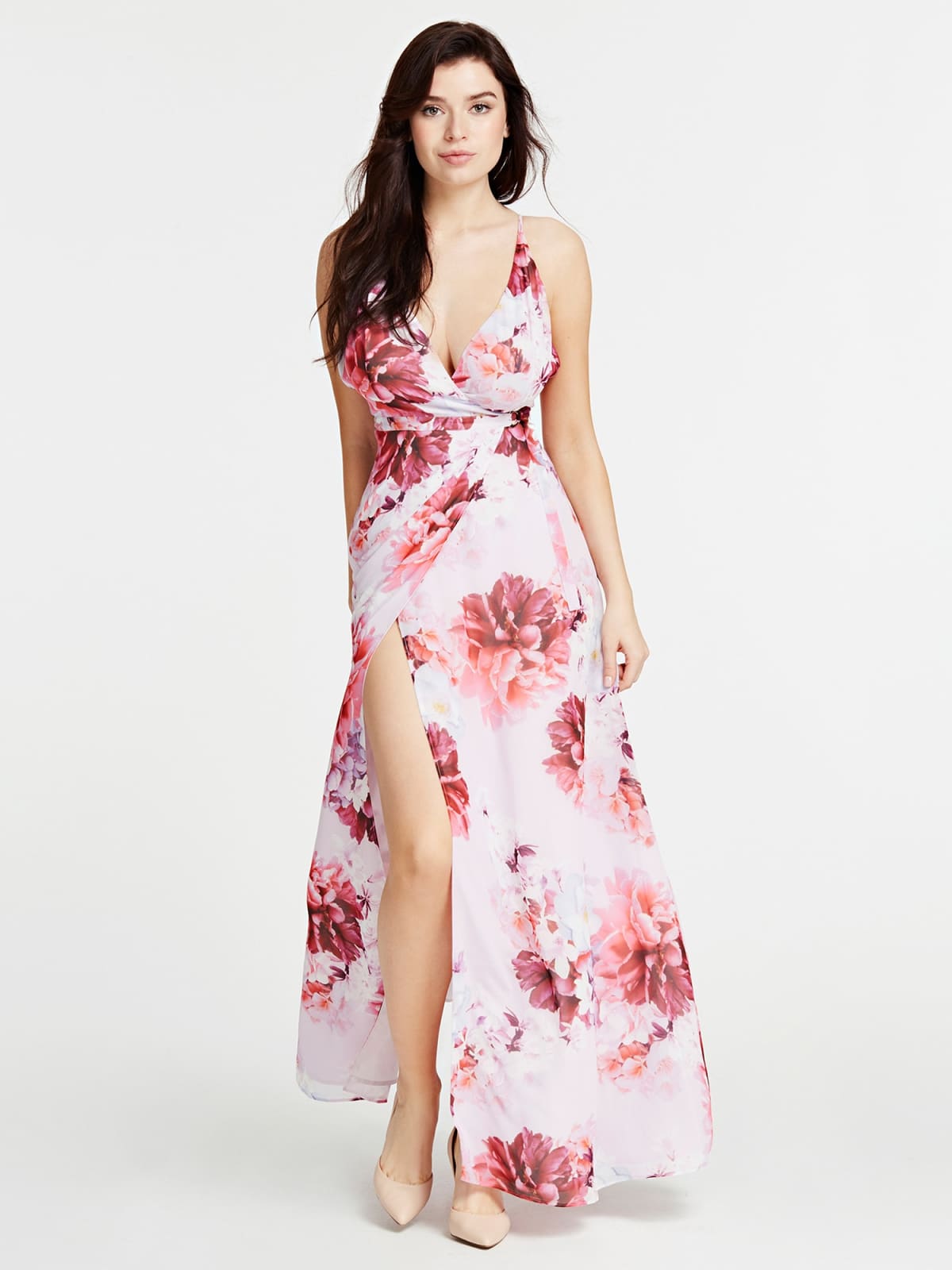 Introducing the stunning Guess Marciano Long Patterned Dress, an elegant and eye-catching dress that is perfect for any occasion. Made of high-quality synthetic fabric, this dress showcases a striking floral pattern that covers the entirety of the garment. Featuring a V-neckline and sleeveless design with adjustable straps, this slim-fit dress is both flattering and comfortable to wear.