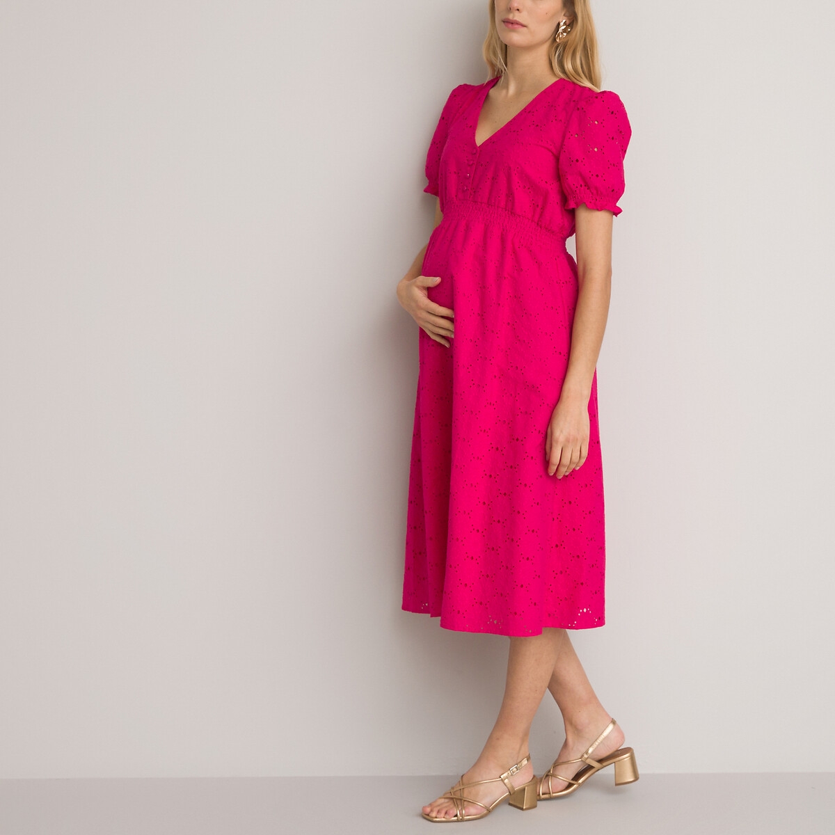 La Redoute Collections Broderie Anglaise Maternity Dress in Cotton with Puff Sleeves