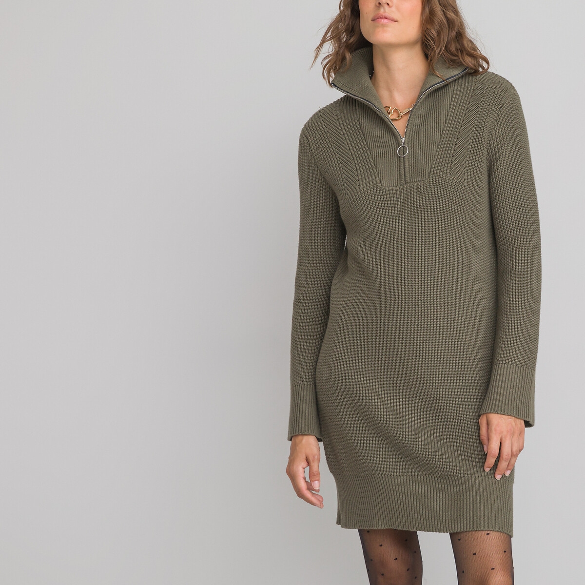 La Redoute Collections Half Zip Jumper Dress in Cotton Mix with Long Sleeves