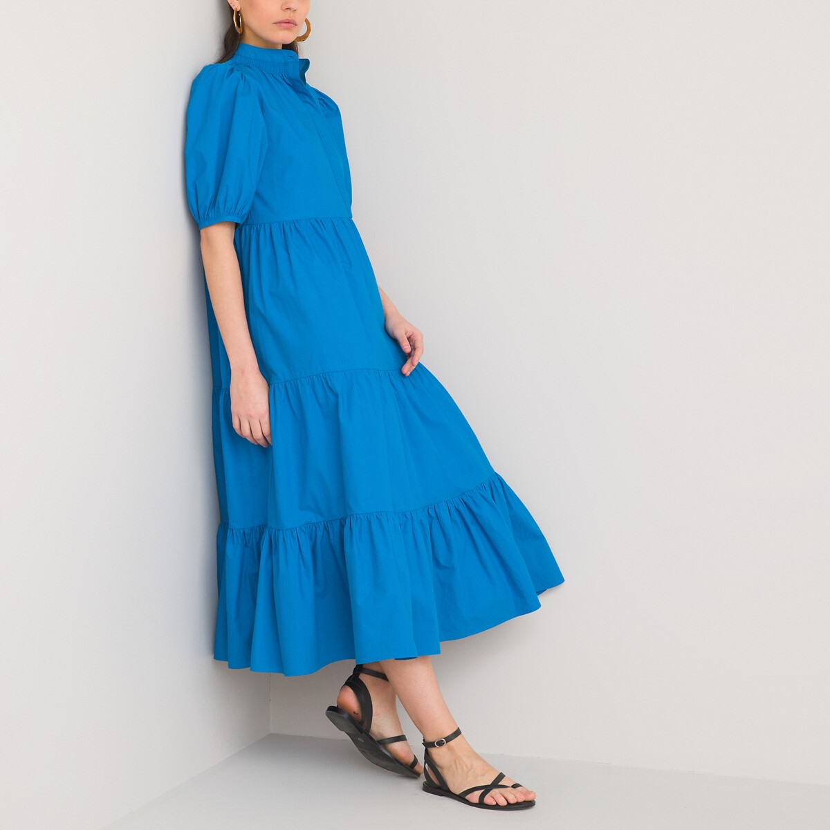 La Redoute Collections Organic Cotton Babydoll Dress with Puff Sleeves