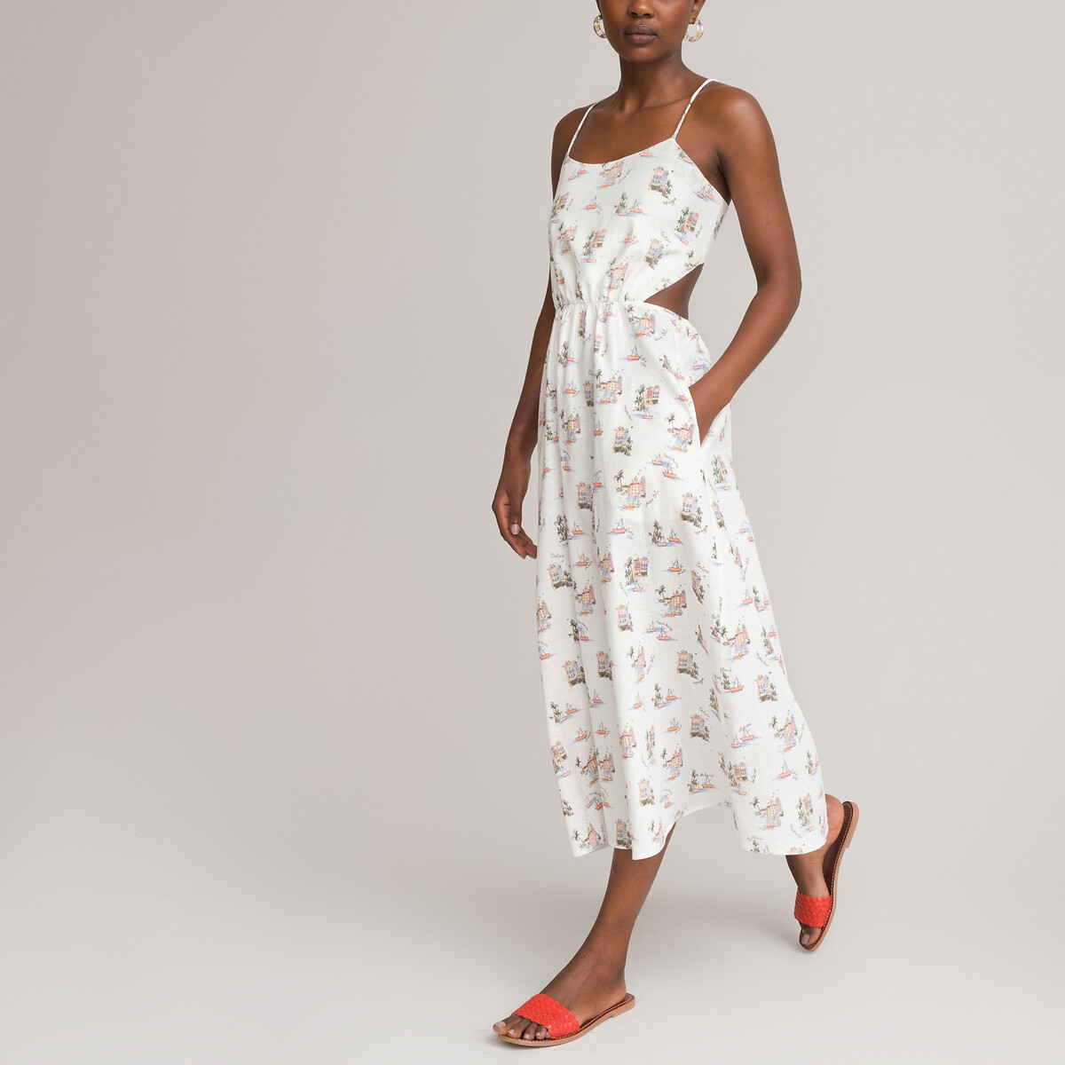 La Redoute Collections Printed Cutout Cami Dress in Linen Mix