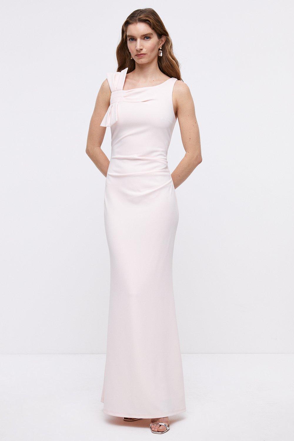 Coast Bow Shoulder Sculpting Crepe Bridesmaids Maxi Dress