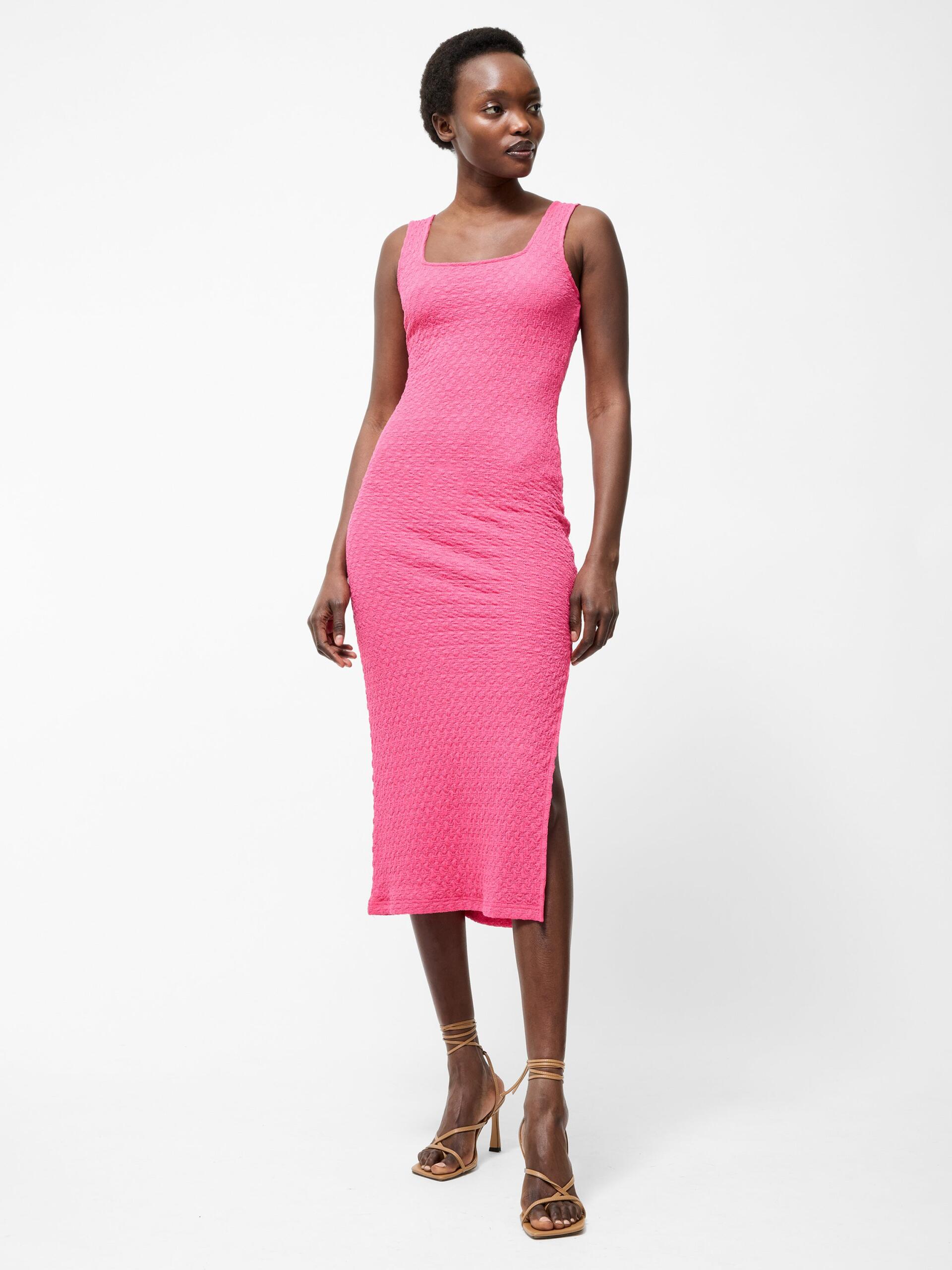 French Connection Textured Square Neck Maxi Dress Raspberry Sorbet