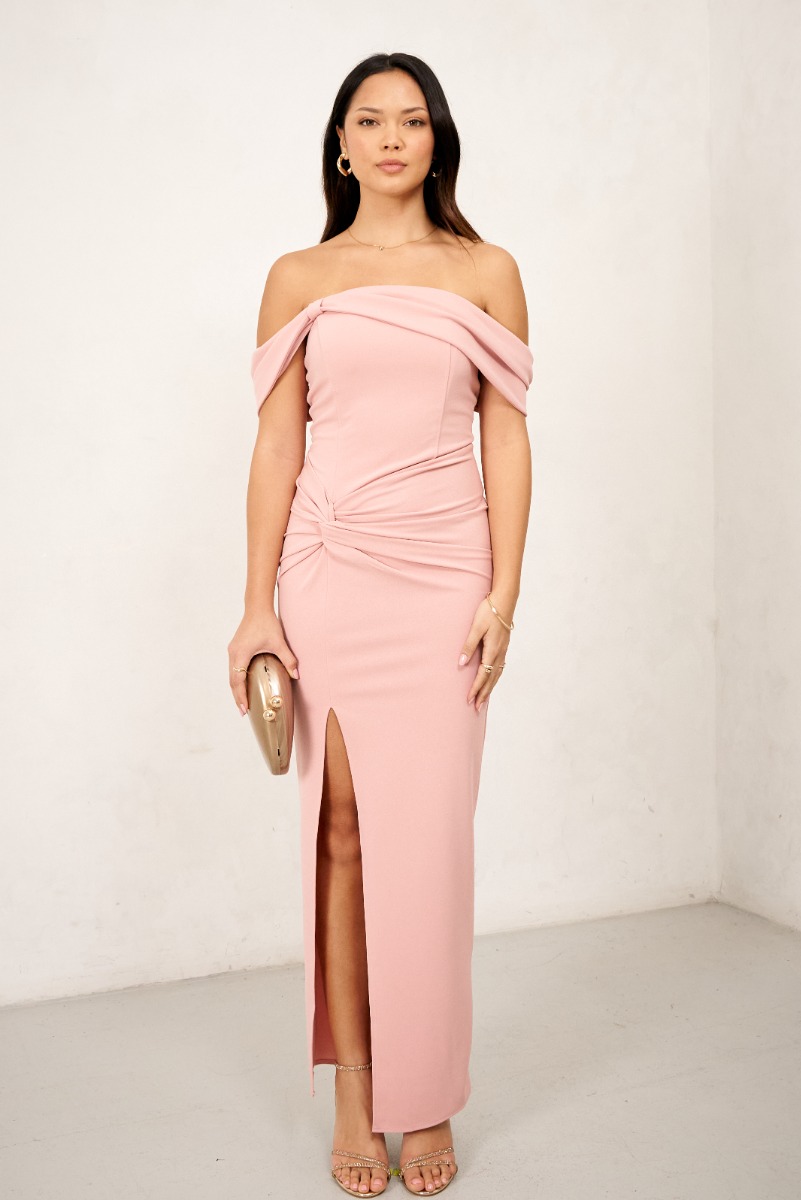TFNC Ocasion Dress – Off the Shoulder – Knot Detail – Maxi length Material: 100% Polyester. Care: Hand wash only