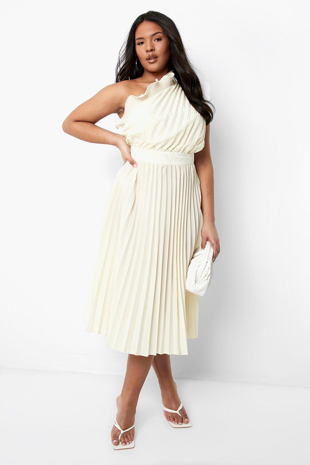 Boohoo Womens Plus Pleated Ruffle One Shoulder Midi Dress
