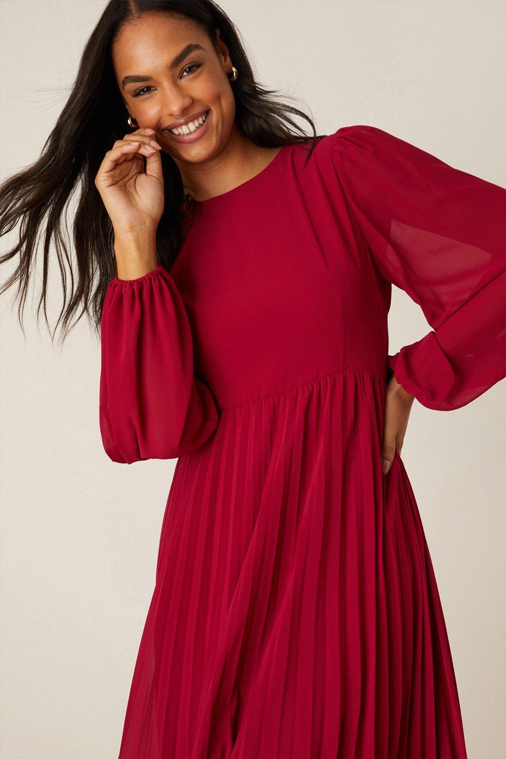 Dorothy Perkins Womens Red Chiffon Pleated Midi Dress