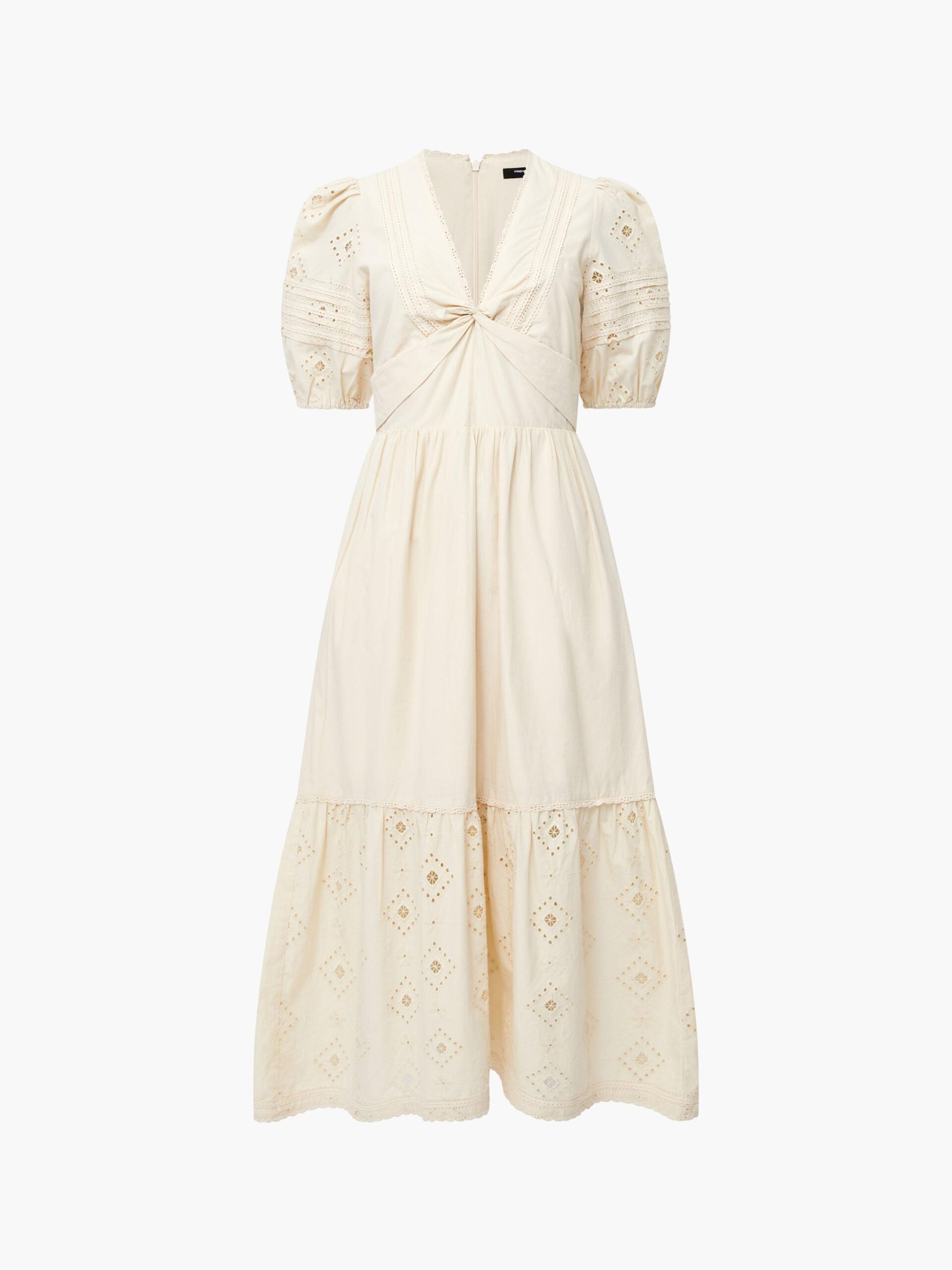 French Connection Cambria Cotton Broderie Midi Dress Linen White