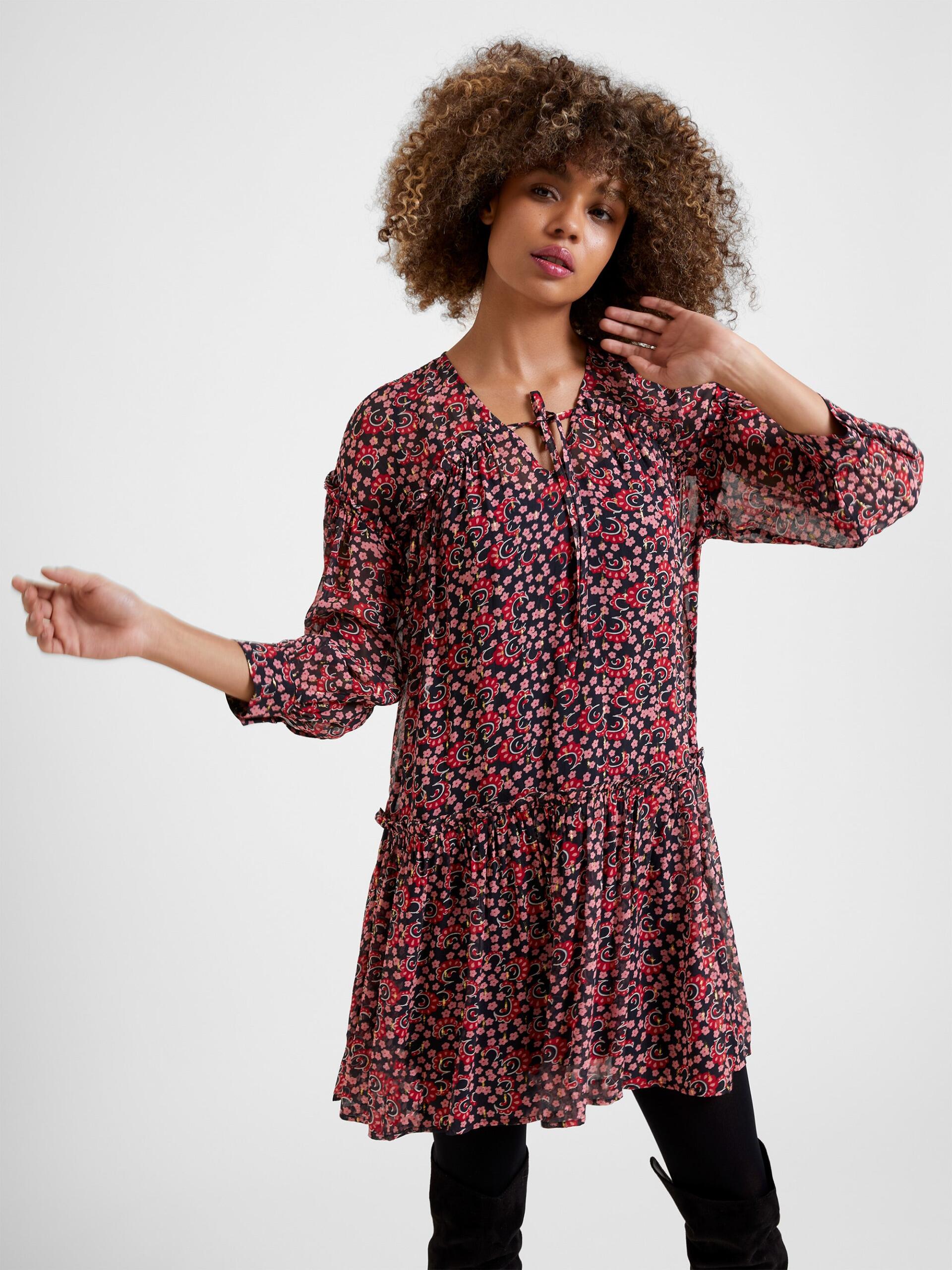 Great Plains Primrose Hill Floral V-Neck Mini Dress Black Multi