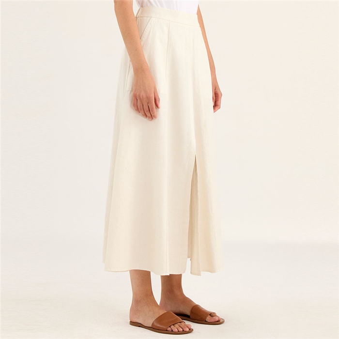 Skirt midi linen blend by Rosso This midi linen blend skirt by Rosso is such a versatile and elegant piece. The flowing silhouette and classic midi length make it flattering for various body types, and the part elasticated waist ensures a co ….